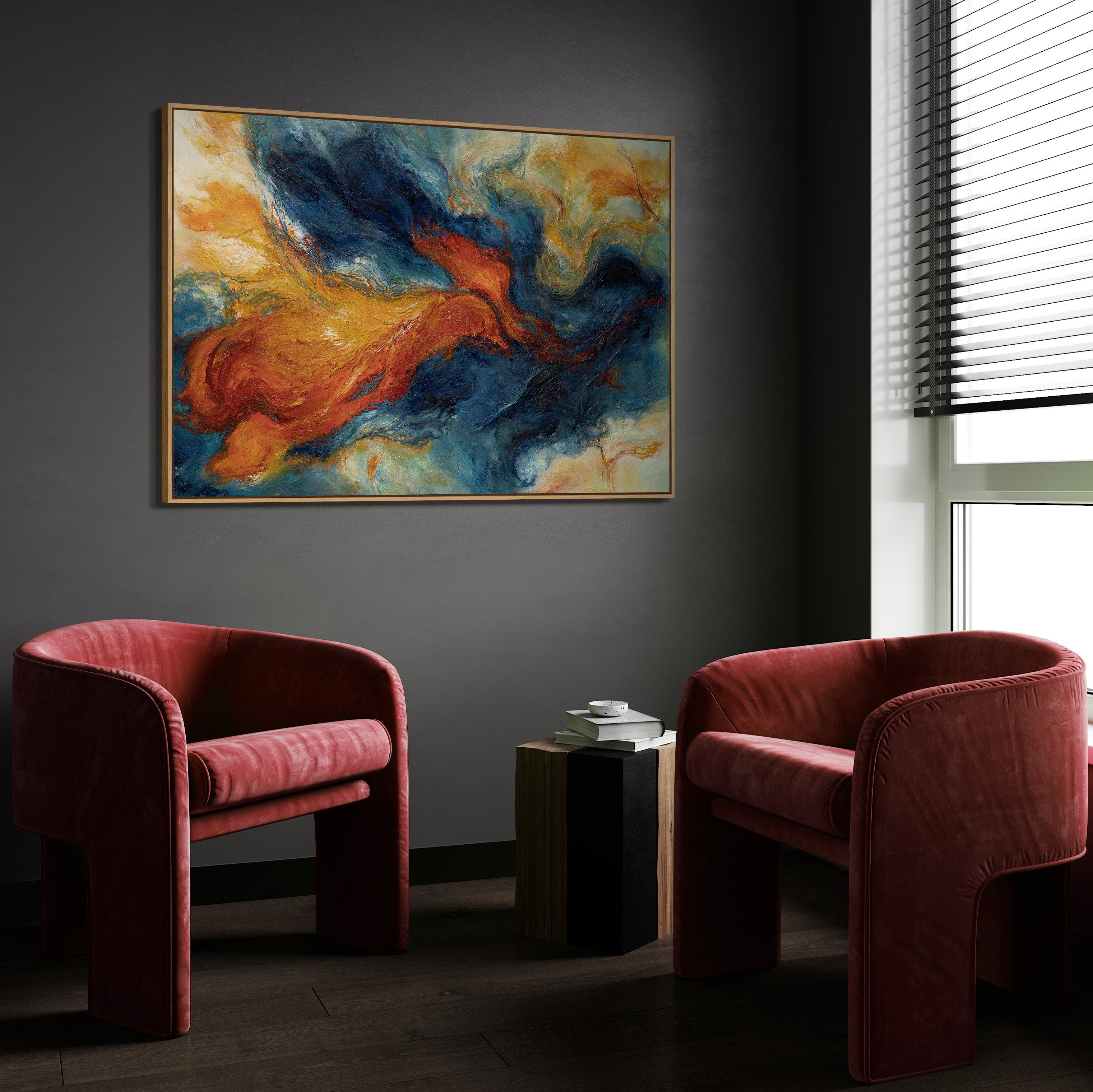 „Verschmelzung der Energien“ steht für Kraft, Bewegung und emotionale Tiefe. Dieses Gemälde belebt den Raum und wirkt als starker visueller Mittelpunkt für moderne und individuelle Einrichtungskonzepte.