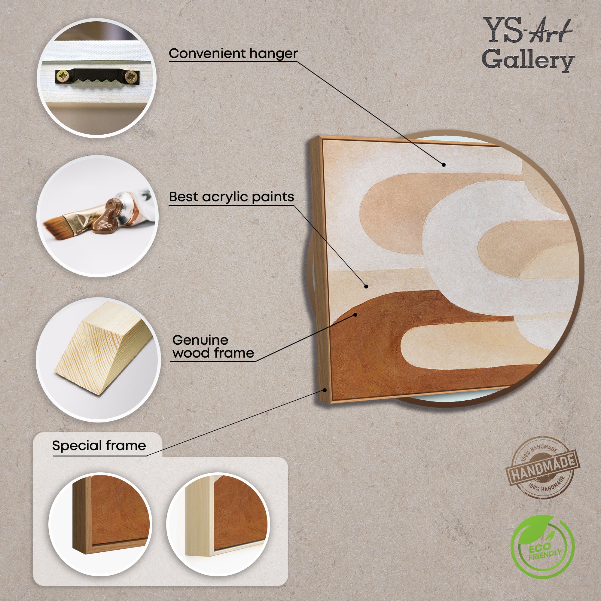 Das handgemalte Leinwandbild wird im Rahmen präsentiert und eignet sich als moderne Wandkunst für vielseitige Raumkonzepte. Durch die neutrale Farbpalette und die zeitlose Formsprache lässt sich das Kunstwerk harmonisch in unterschiedliche Interieurs integrieren.