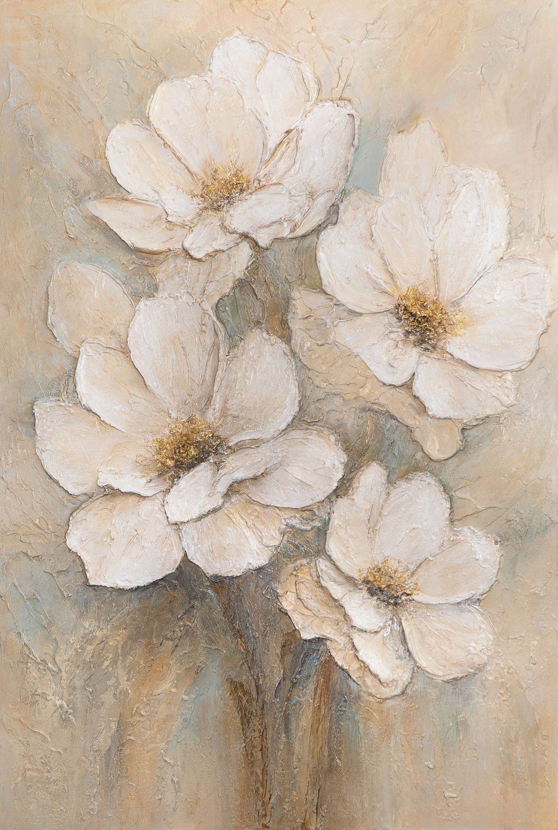 „Schleier der Zärtlichkeit“ ist ein handgemaltes Acrylgemälde, das mit zarten weißen Blüten auf warmem, beigefarbenem Hintergrund bezaubert. Die Blütenblätter wirken durch die reliefartige Struktur besonders lebendig und erhalten eine edle Tiefe. Sanfte Farbverläufe zwischen Creme, Beige und dezenten Goldnuancen verleihen dem Werk eine harmonische, ruhige Ausstrahlung.