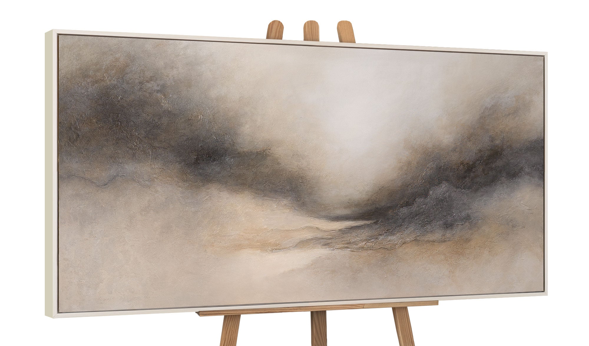 • Abstraktes Acrylbild „Nebliger Morgen“ – Elegante Acrylgemälde in Beige & Grau