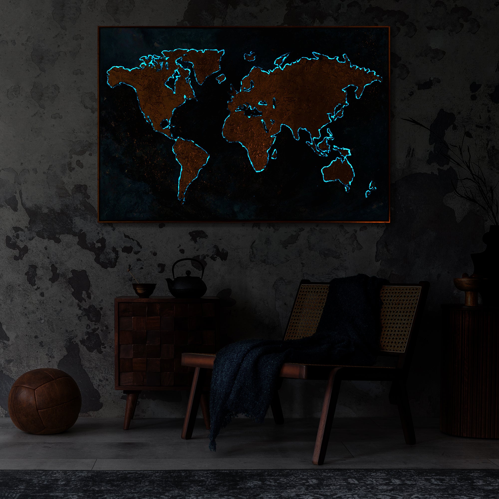 Entdecken Sie das faszinierende "Magische Karte" - eine Kollektion nachtleuchtender Kunstwerke. Leuchtende Gemälde, die Ihre Sinne verzaubern und Räume zum Strahlen bringen. Rahmen - Schwarz mit Gold.