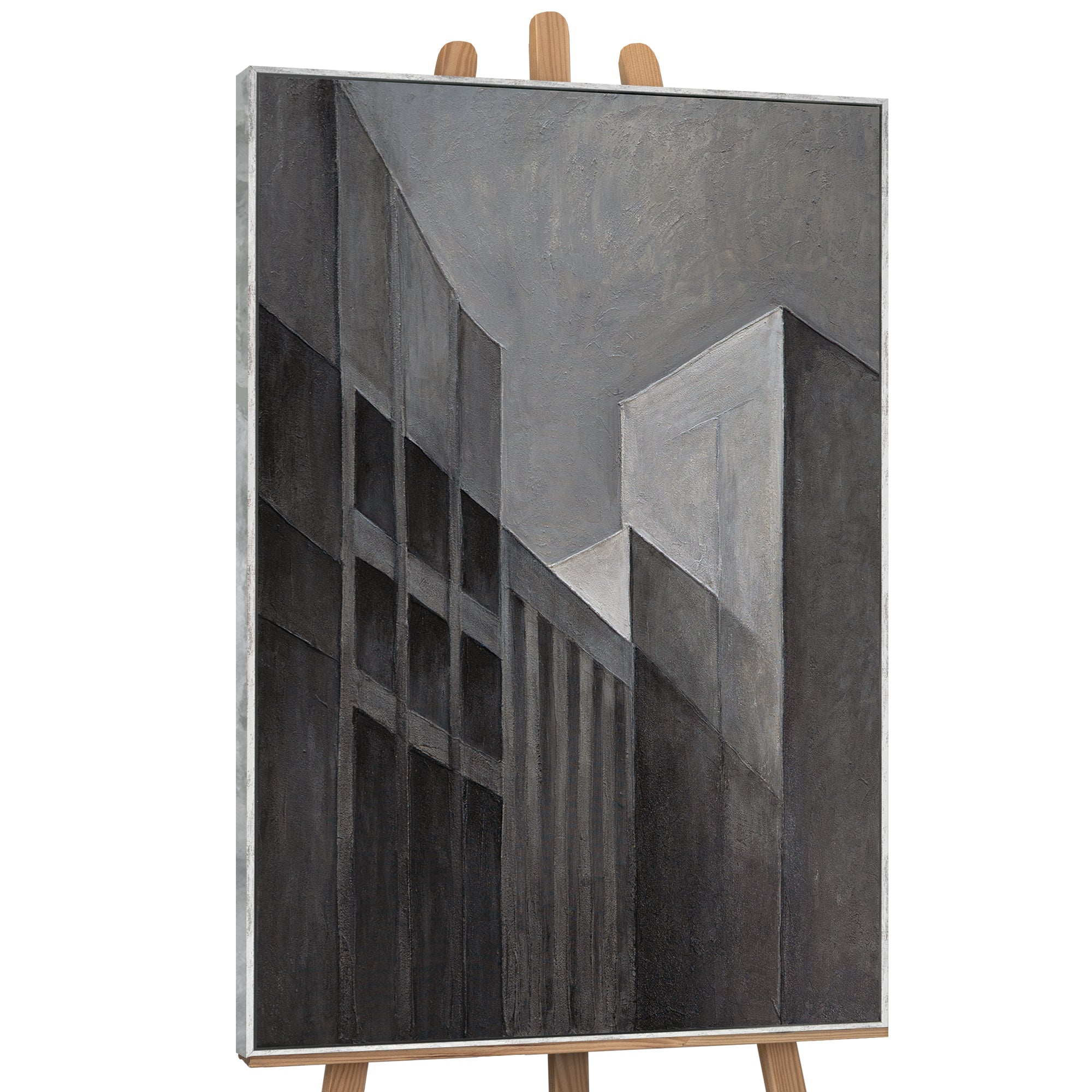 Gemälde Abstrakt mit Rahmen „Stadtkonturen“ – Moderne Acrylmalerei in Grau & Schwarz