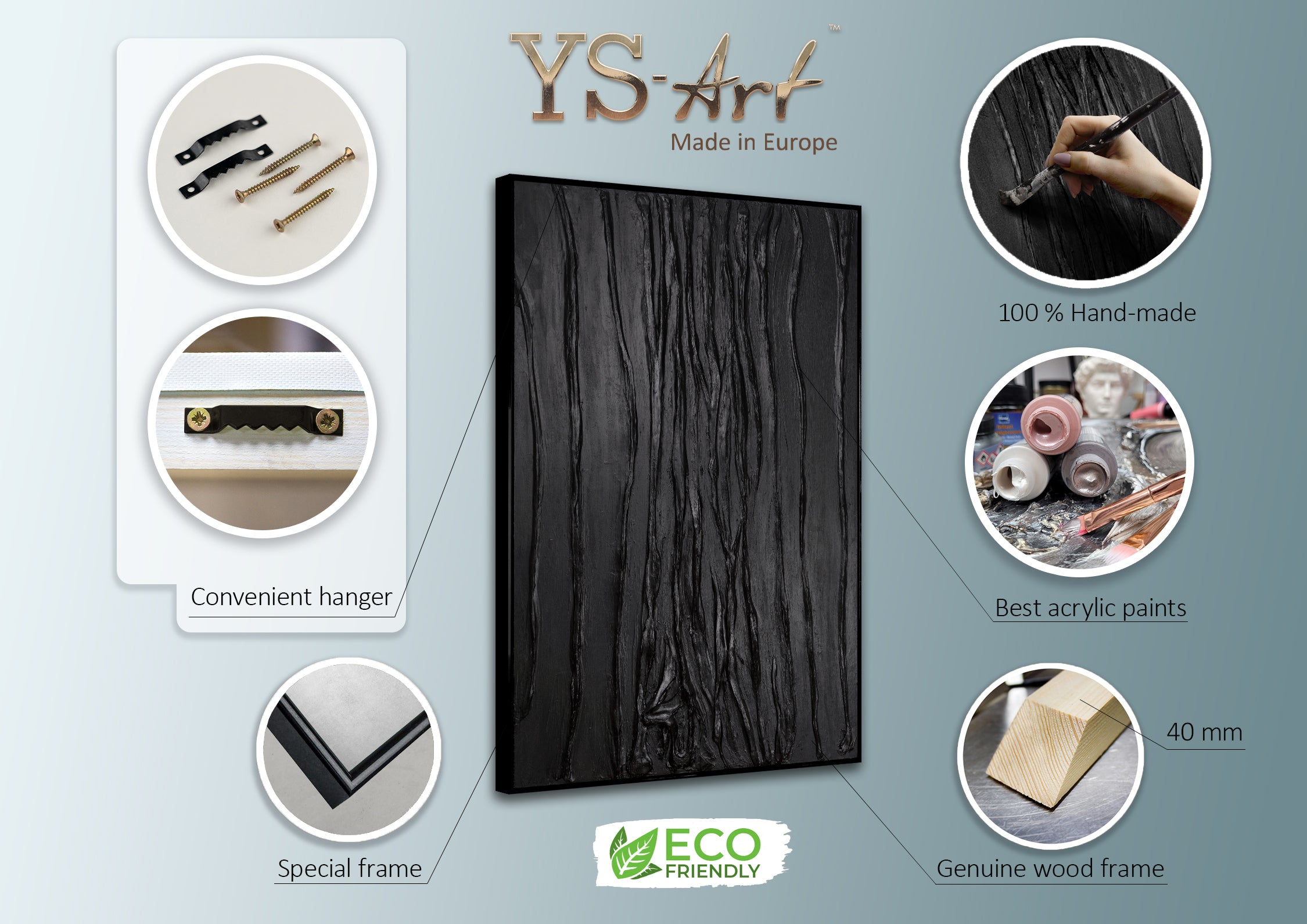 • Wanddeko Acryl Schwarz Struktur Relief Handgemalt