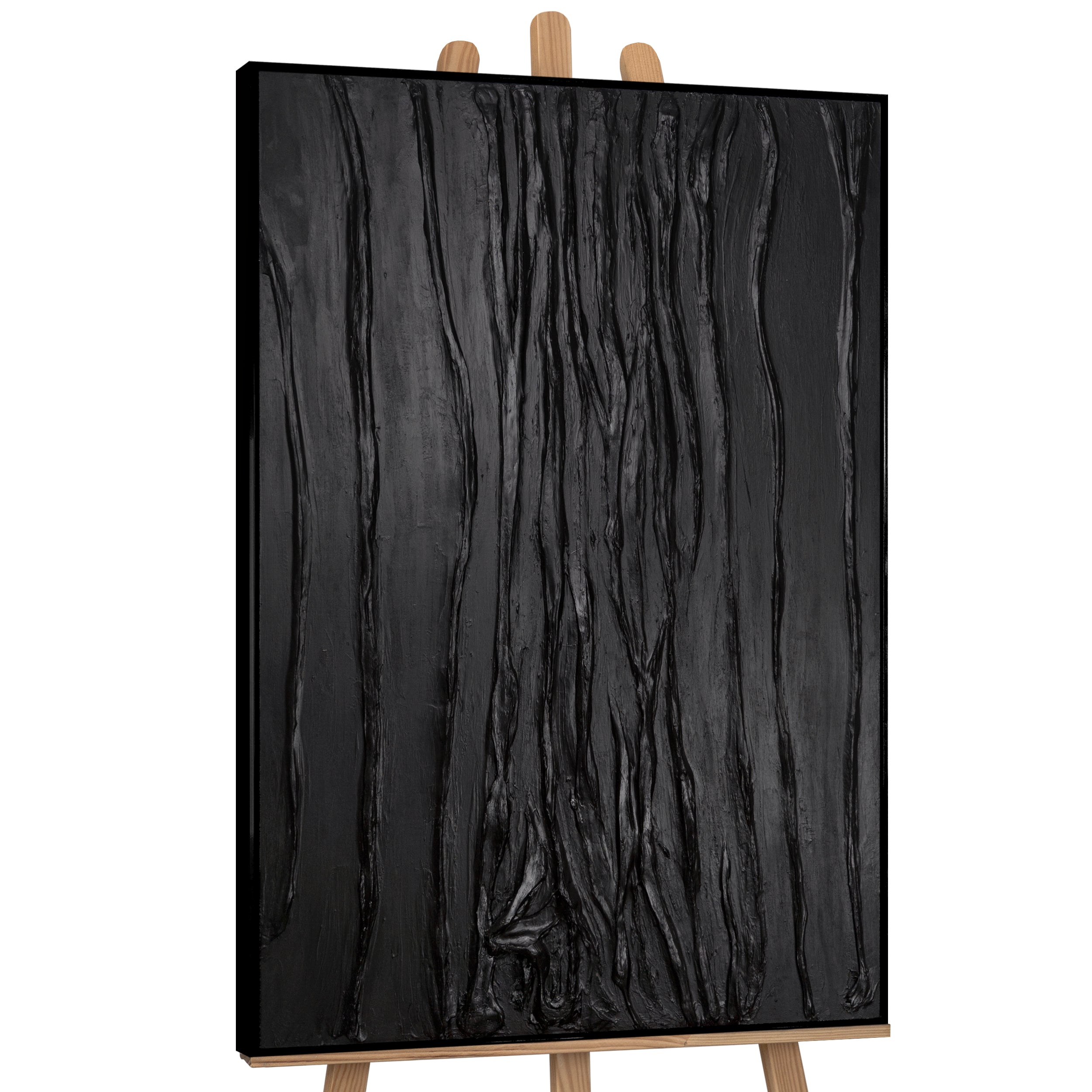 • Schwarzes Acrylbild Struktur Handgemalt Modern