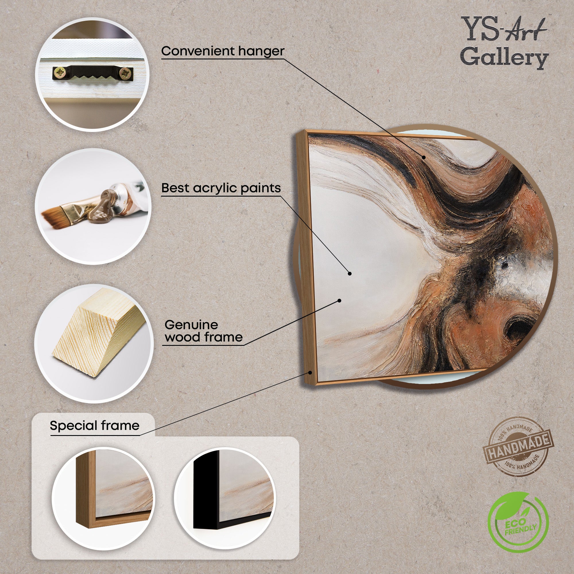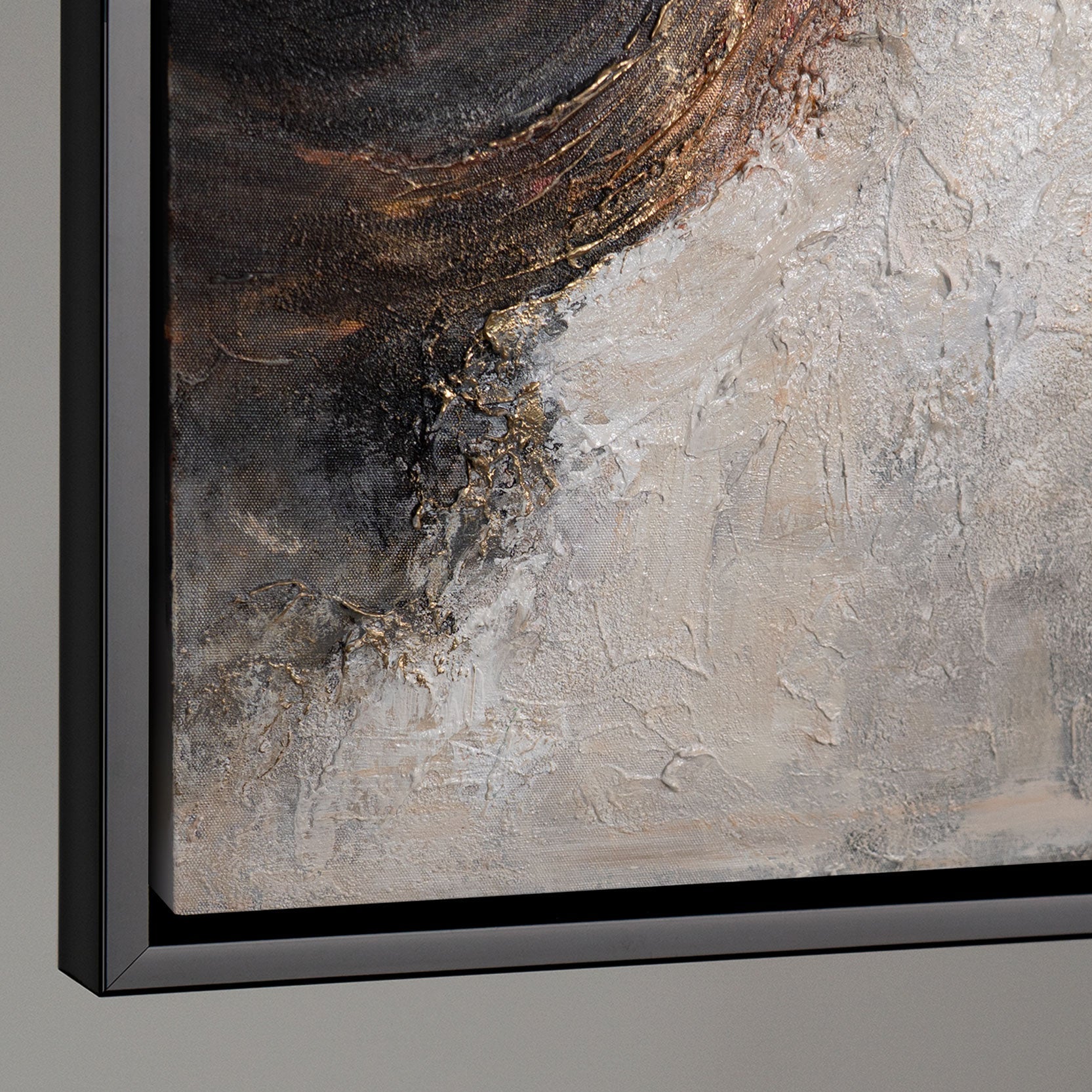 Das handgemalte Leinwandbild wird im Rahmen präsentiert und eignet sich ideal als moderne Wandkunst für Wohnzimmer, Essbereich oder stilvolle Arbeitsräume. Die ausdrucksstarke Struktur verleiht dem Raum Energie und Charakter, ohne dabei unruhig zu wirken, und fügt sich harmonisch in zeitgenössische Interieurs ein.