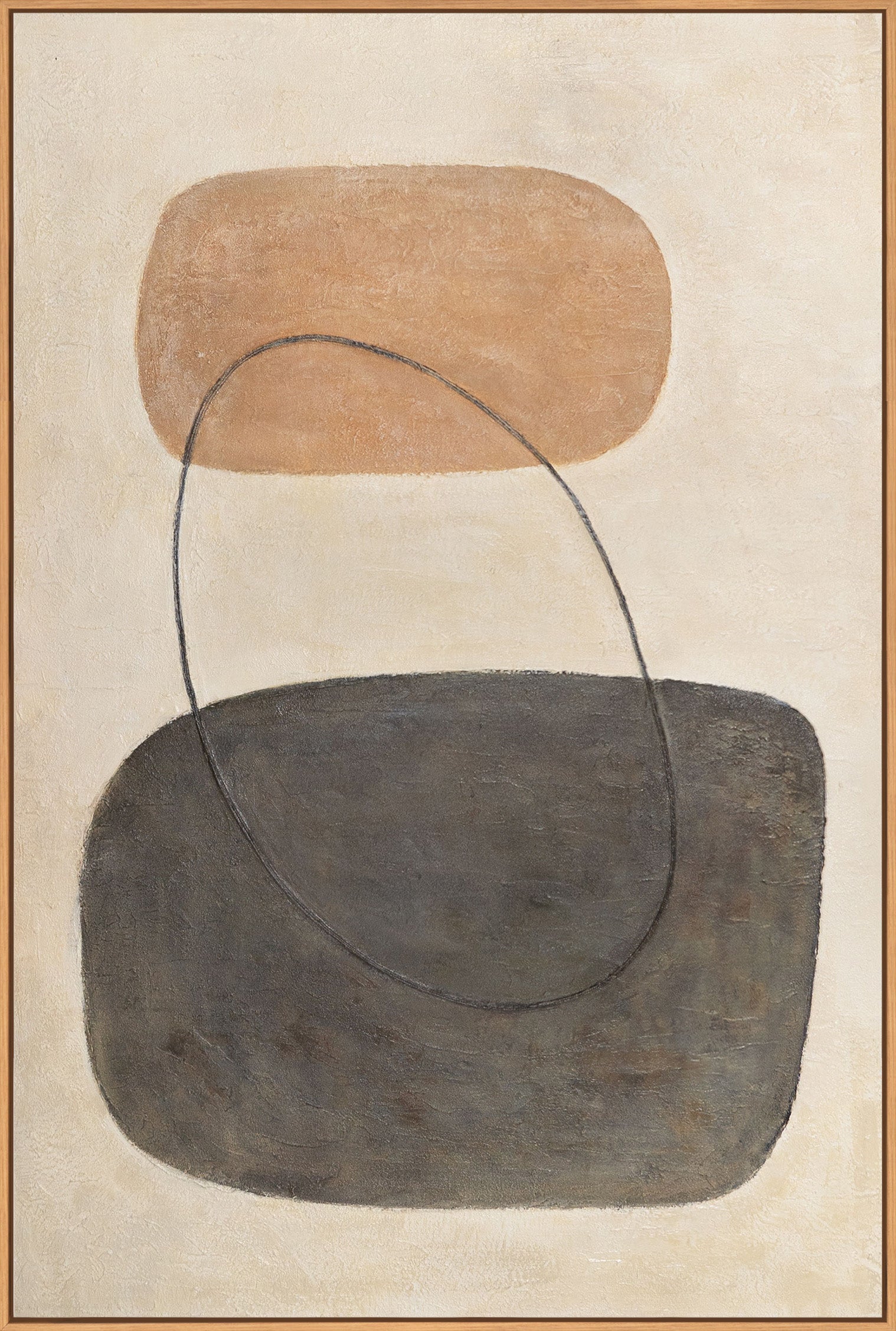 • Abstrakte Leinwandkunst mit organischer Form in warmem Beigeton