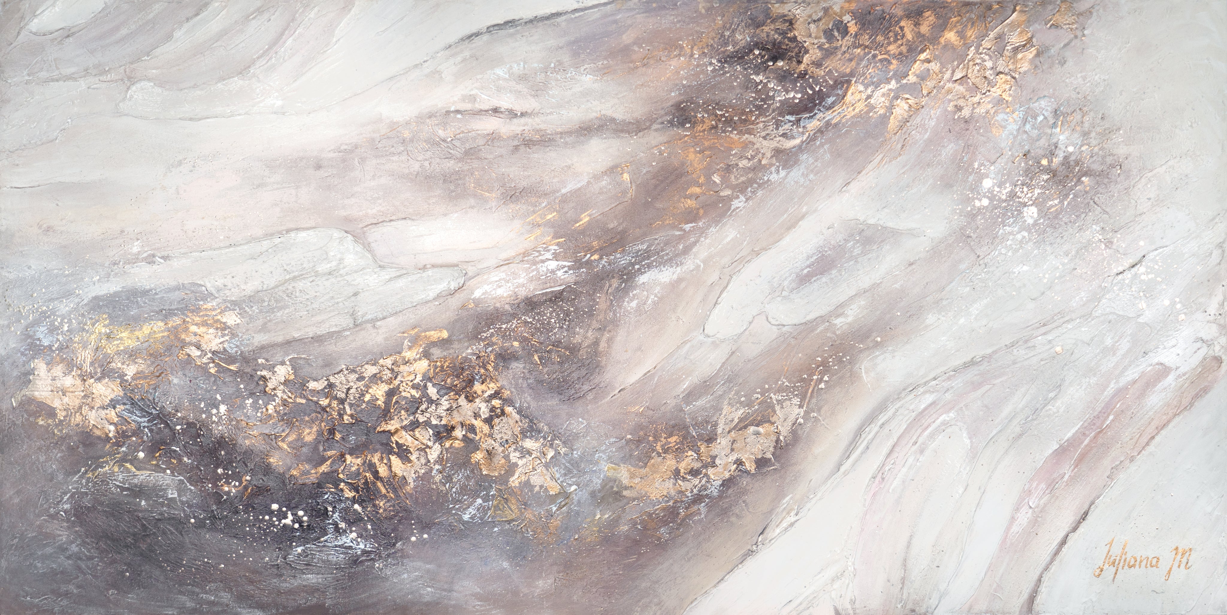 Bereichern Sie Ihr Zuhause mit diesem eleganten handgemalten abstrakten Gemälde. Die feinen Farbnuancen und die goldenen Akzente schaffen eine stilvolle und beruhigende Atmosphäre. Jedes Detail dieses Kunstwerks ist 100% handgefertigt und macht es zu einem einzigartigen Unikat. Profitieren Sie von der kostenlosen Lieferung direkt zu Ihnen nach Hause.
