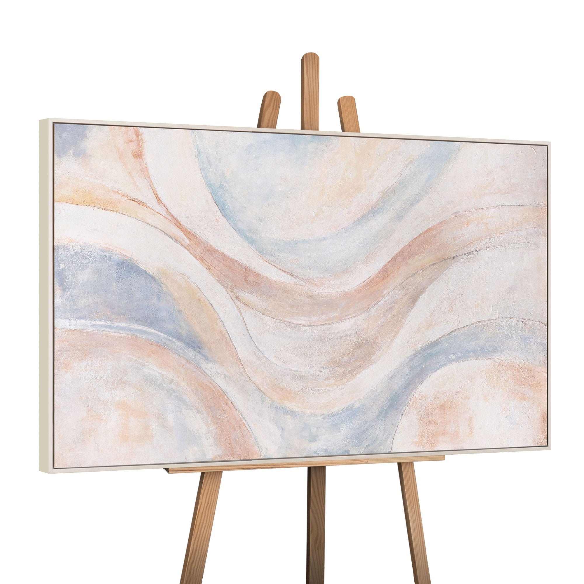 • Abstraktes Acrylbild „Windlinien“ – Moderne Wandkunst in Beige, Blau & Rosa