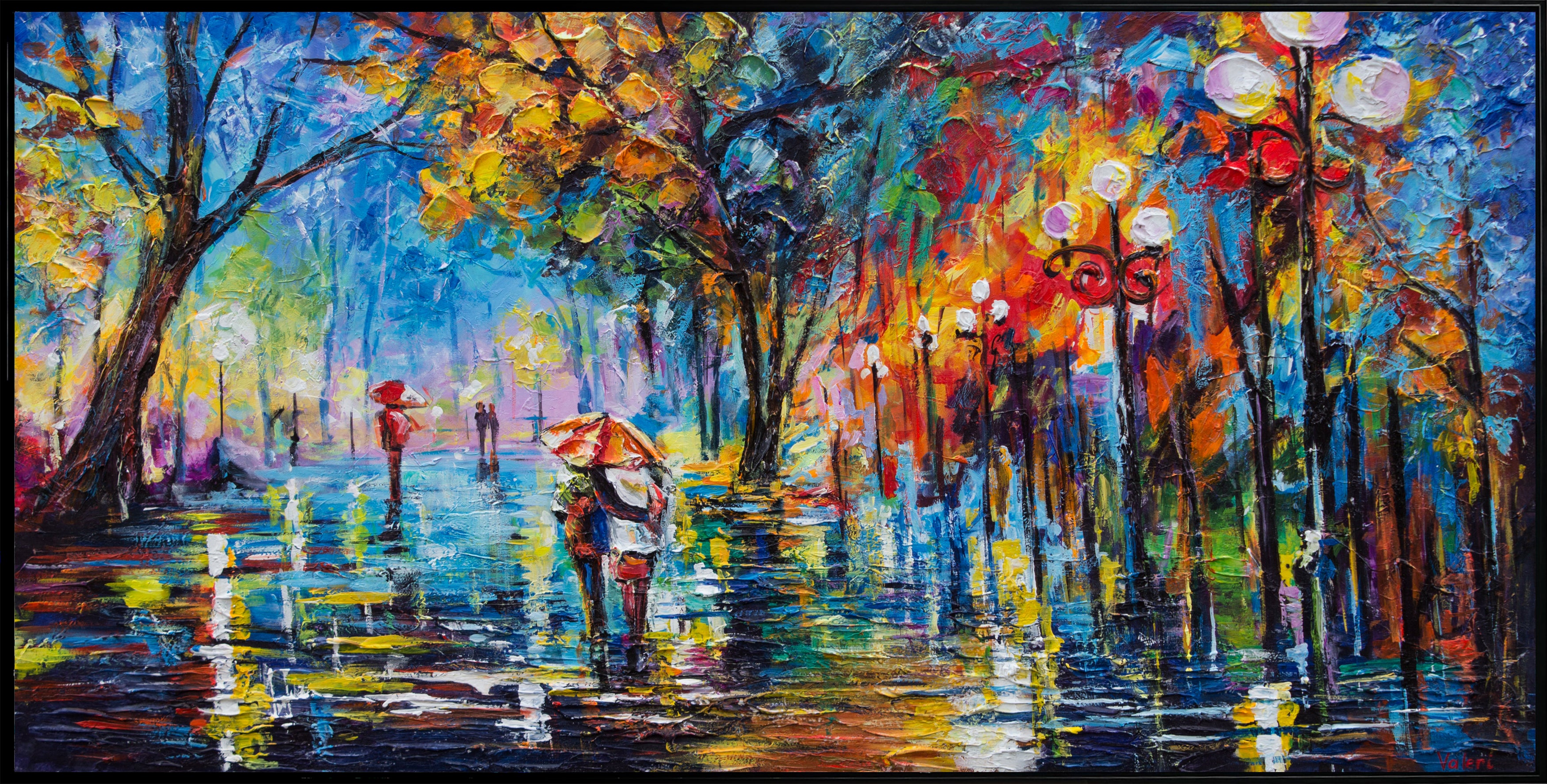 Acryl Leinwand "Herbstliche Allee" moderne abstrakte Bilder Wohnzimmer mit Rahmen