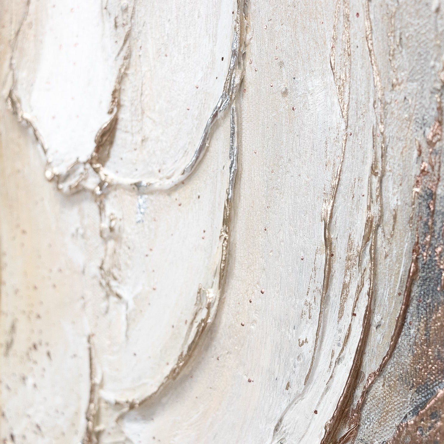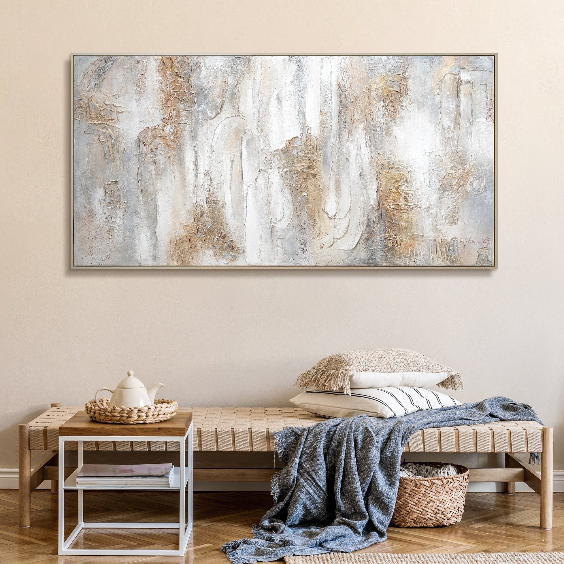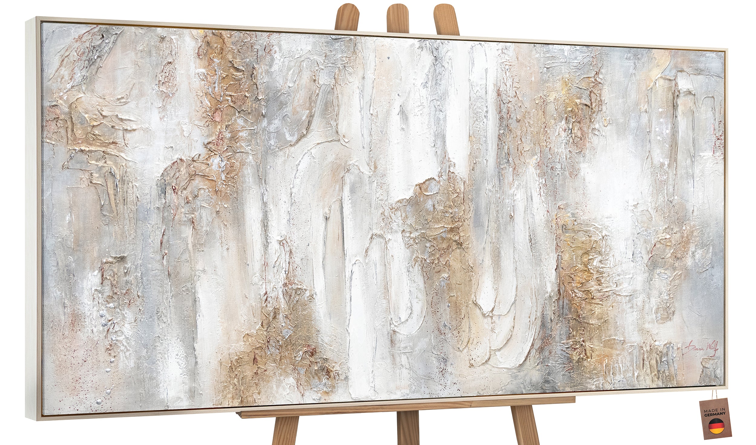 • Acrylbild Struktur Weiß Gold Beige Handgemalt