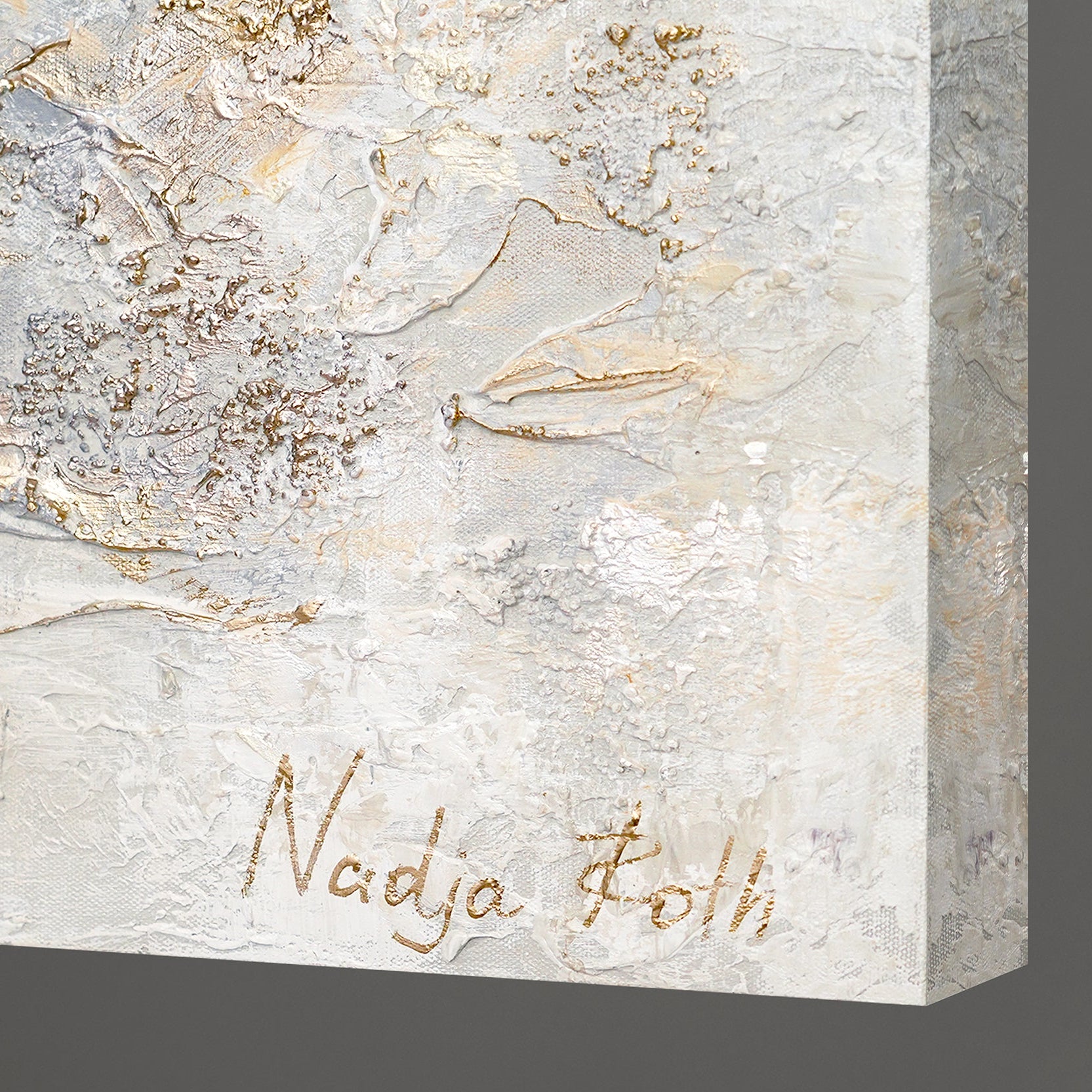 Diese außergewöhnliche texturierte Abstraktion wird den Ton in Ihrem Interieur angeben. Außerdem wird das Gemälde Ihre Individualität und Ihren guten Geschmack betonen. Das Zusammenspiel von den Farben mit dem verarbeiteten Blattgold machen diese Gemälde so faszinierend und einzigartig.