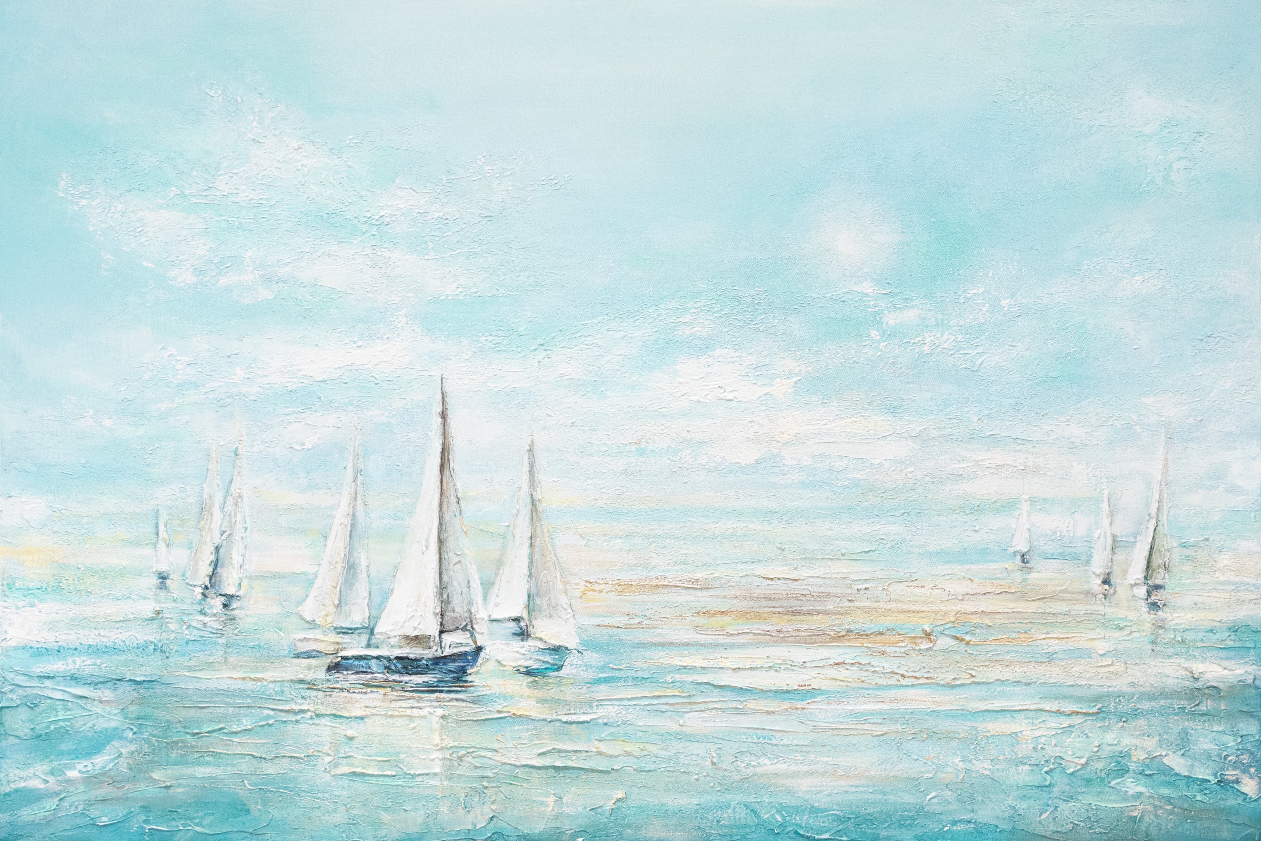 • Moderne Kunst Acryl Landschaftsmalerei auf Leinwand "Meeresblau"