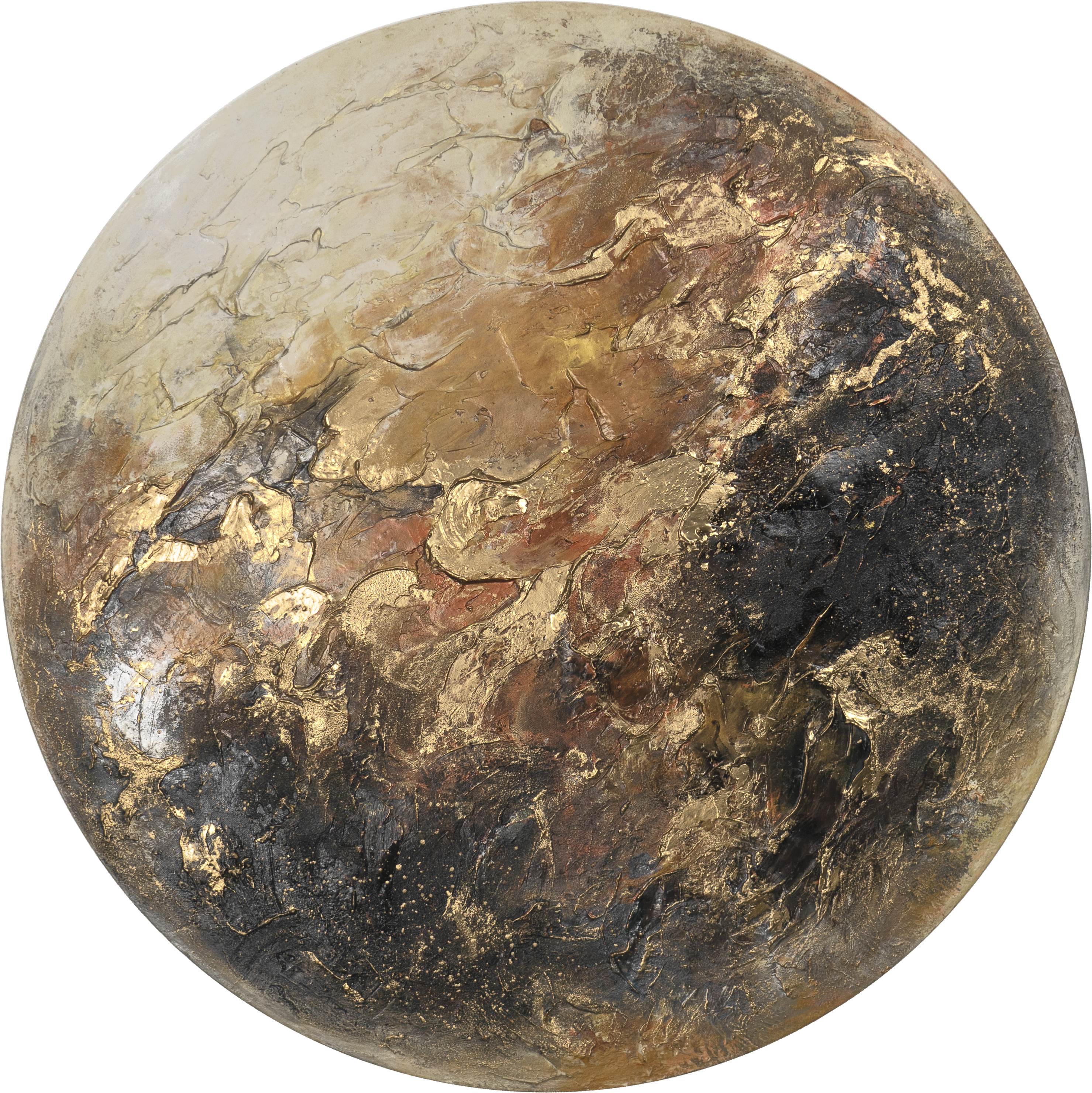 Dekorieren Sie Ihr Zuhause oder Ihr Büro mit der faszinierenden „Venus“, einem handgemalten runden Acrylbild, das die Schönheit des Planeten einfängt. Dieses Kunstwerk leuchtet im Dunkeln dank einer speziellen Leuchtfarbe und kombiniert meisterhaft goldene, braune und schwarze Texturen, die eine luxuriöse und dynamische Atmosphäre schaffen.