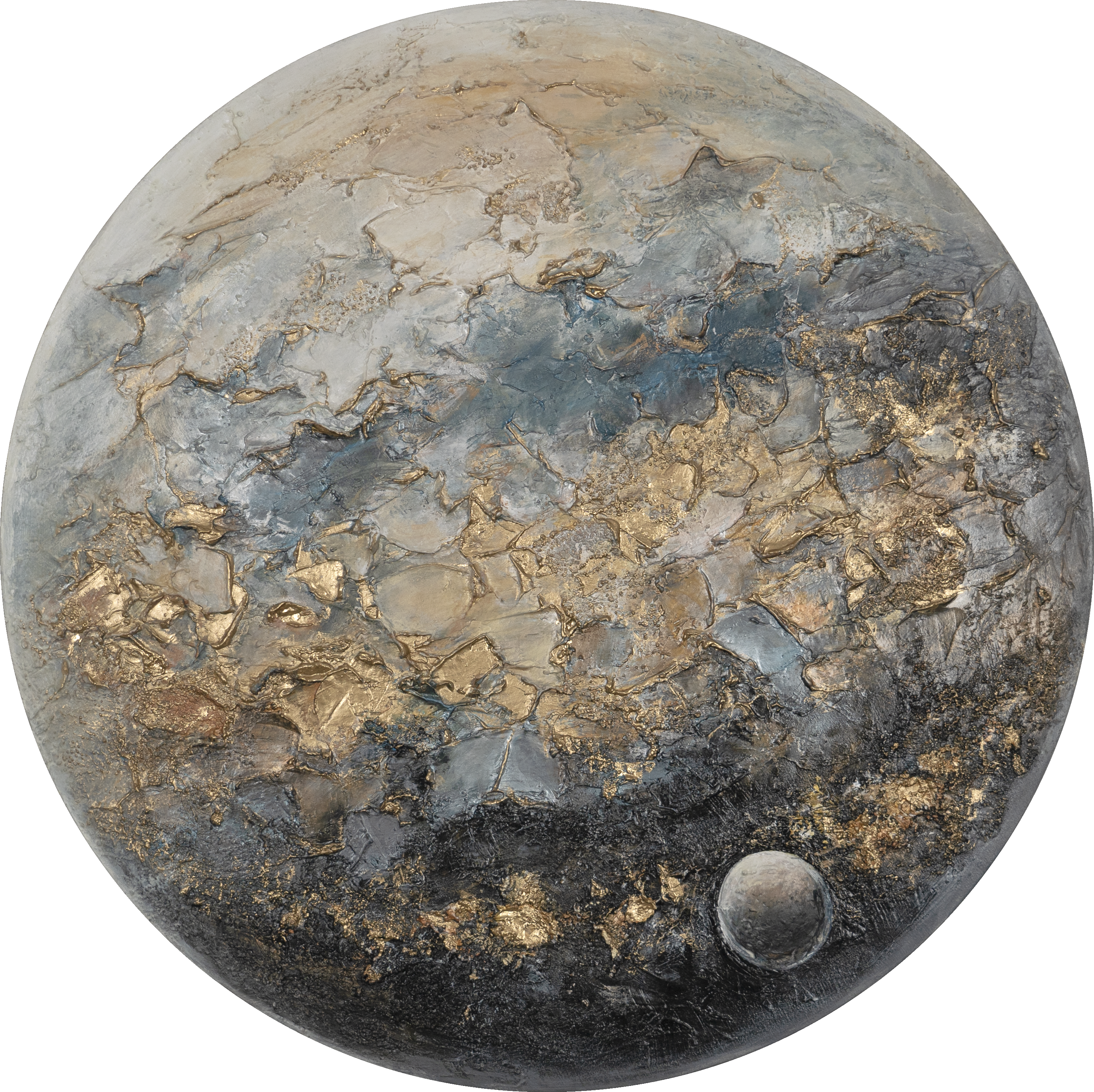 "Orbis" vereint moderne Ästhetik und künstlerische Handwerkskunst. Das handgemalte Acrylgemälde in Planetform strahlt Eleganz aus und eignet sich hervorragend, um Wohnzimmer, Schlafzimmer oder Büros mit einem inspirierenden Highlight zu bereichern.