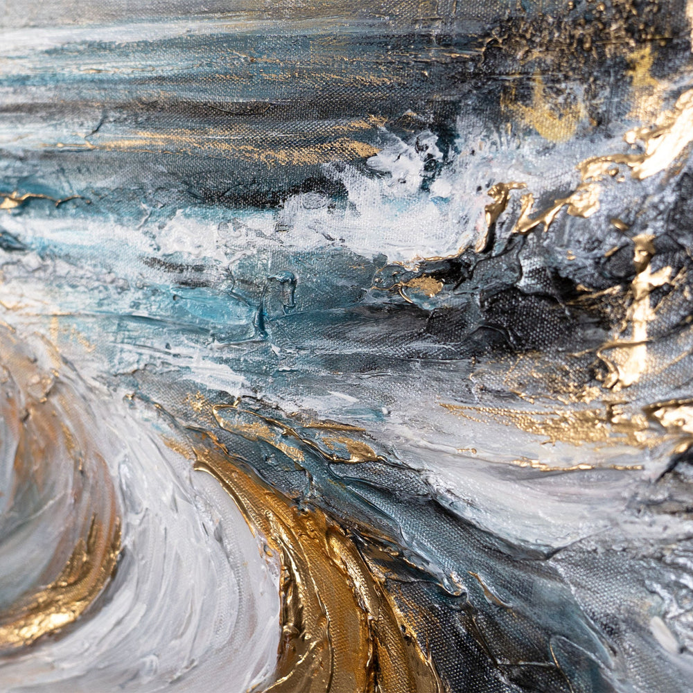 Hand-painted acrylic paintings on canvas abstract "Golden Surf" 115x50cm