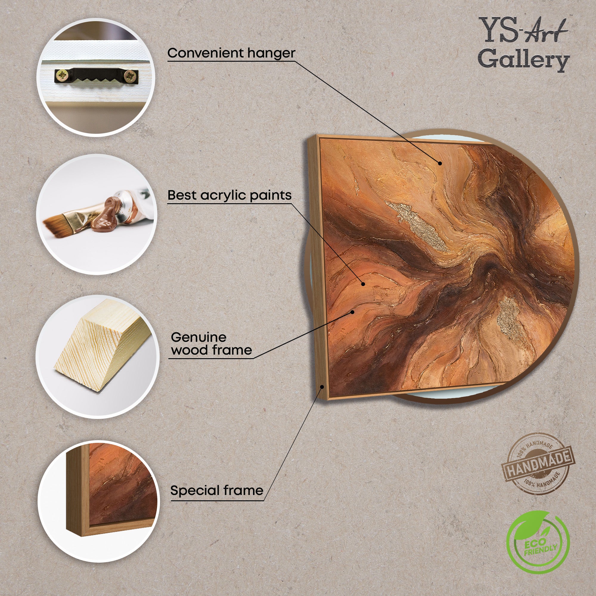Handgemaltes Gemälde in warmen Erdtönen – moderne Leinwandkunst mit Rahmen „Bernsteinfarbene Ströme“