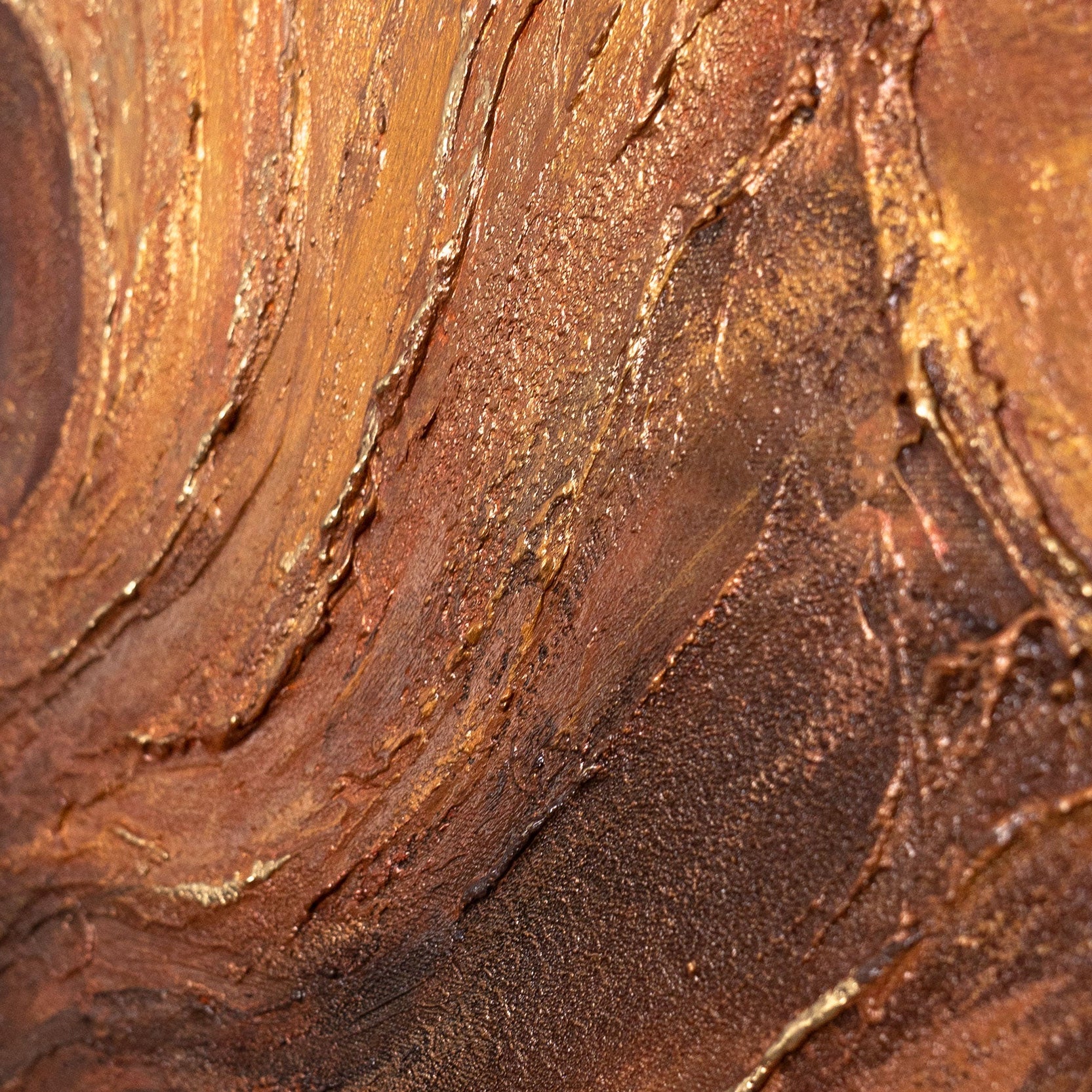 • Abstraktes Leinwandbild mit kraftvollem Wirbelmuster in Braun- und Kupfertönen
