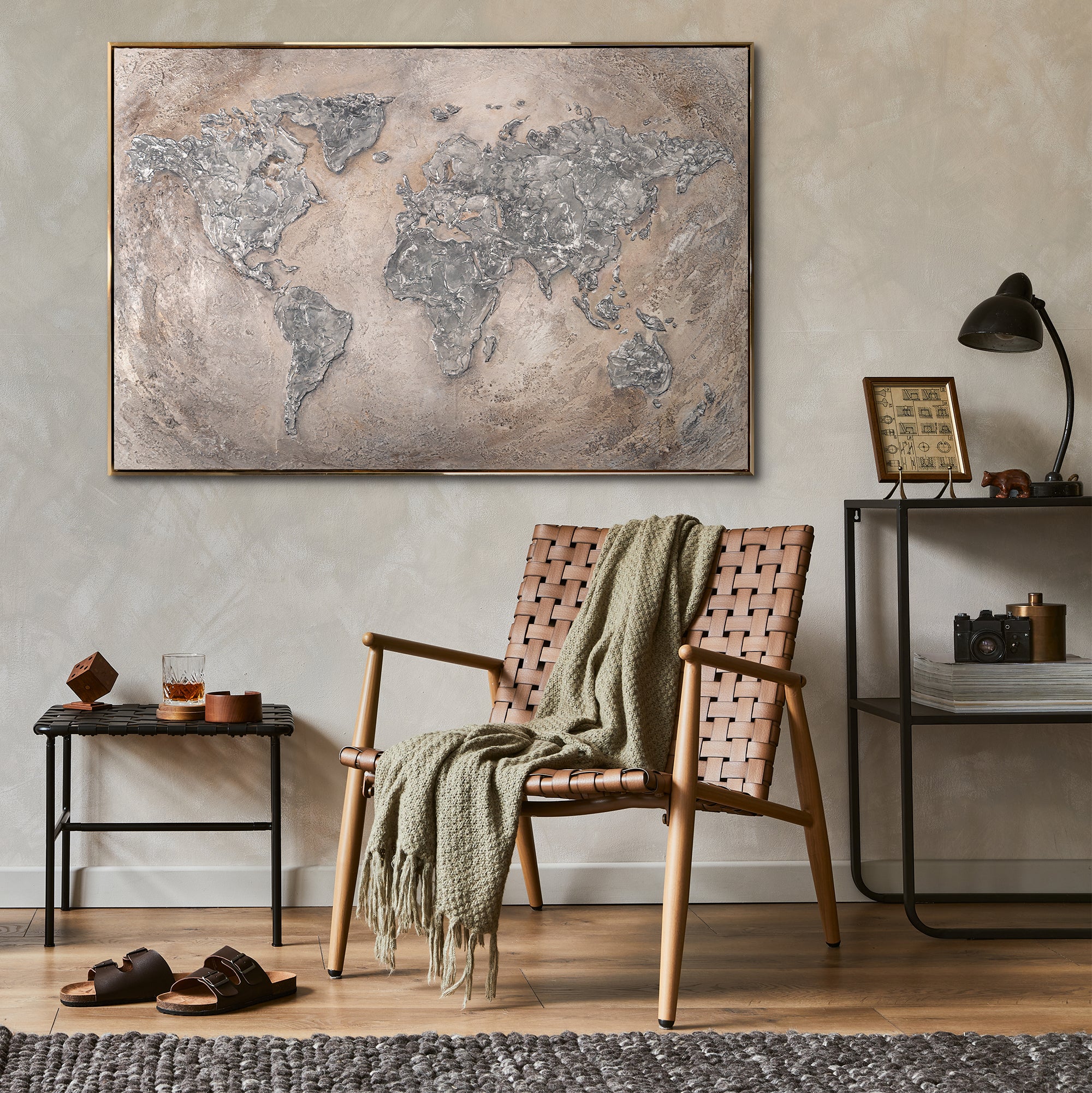 • Acrylbild Weltkarte Relief Handgemalt Modern Deko