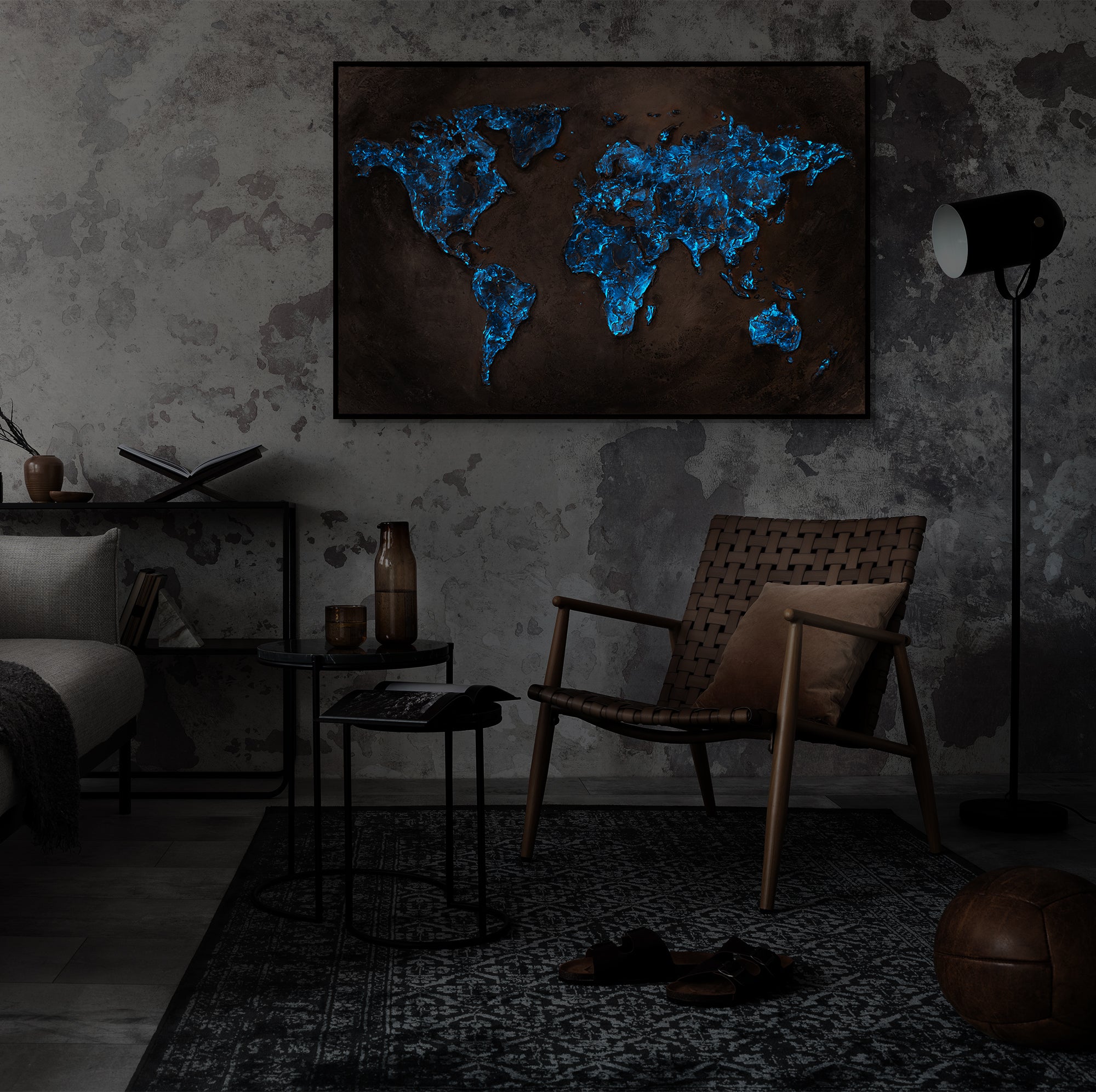 • Leuchtbild Weltkarte Handgemalt Struktur Bronze