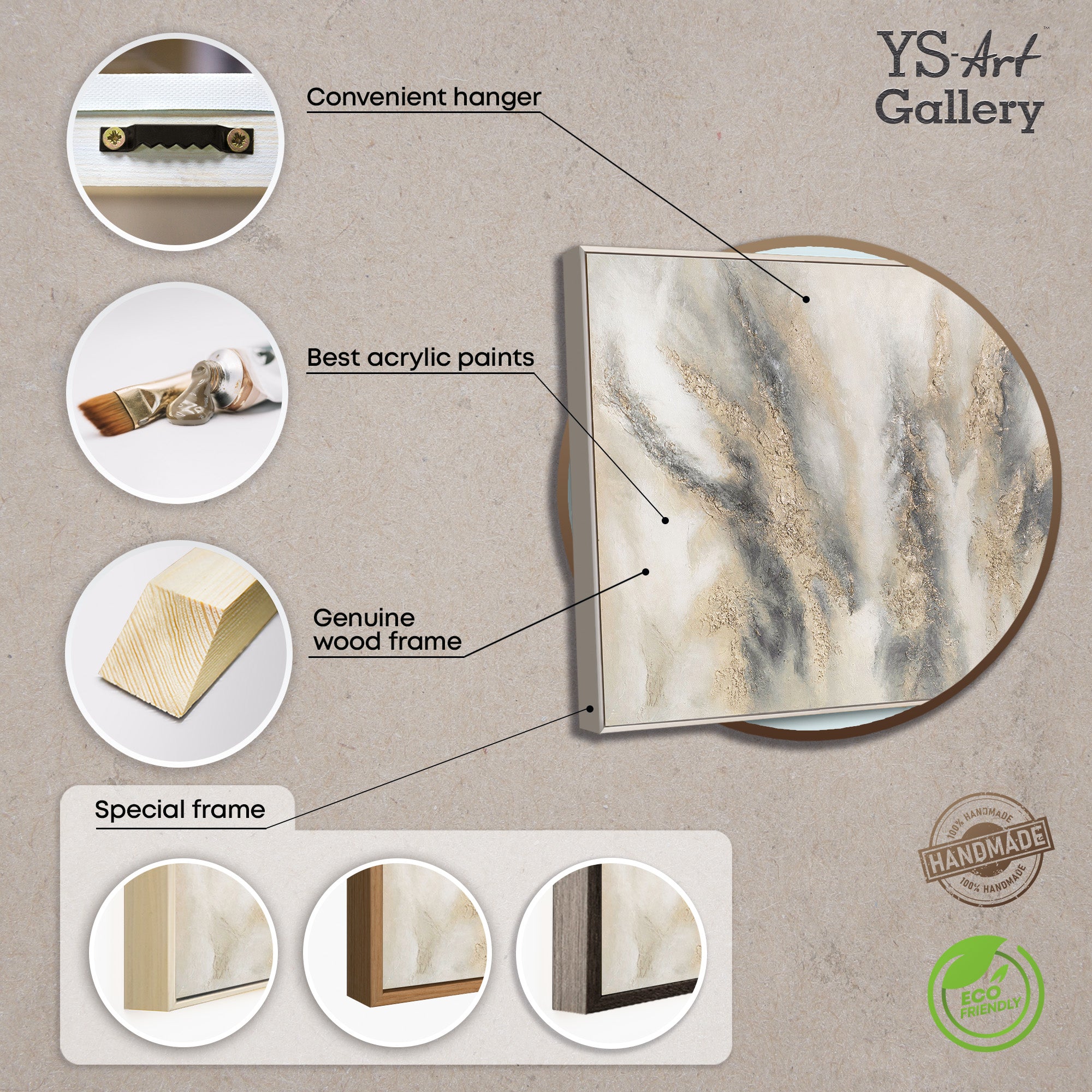 - Colors: Beige, Gray, Cream, Gold Accents