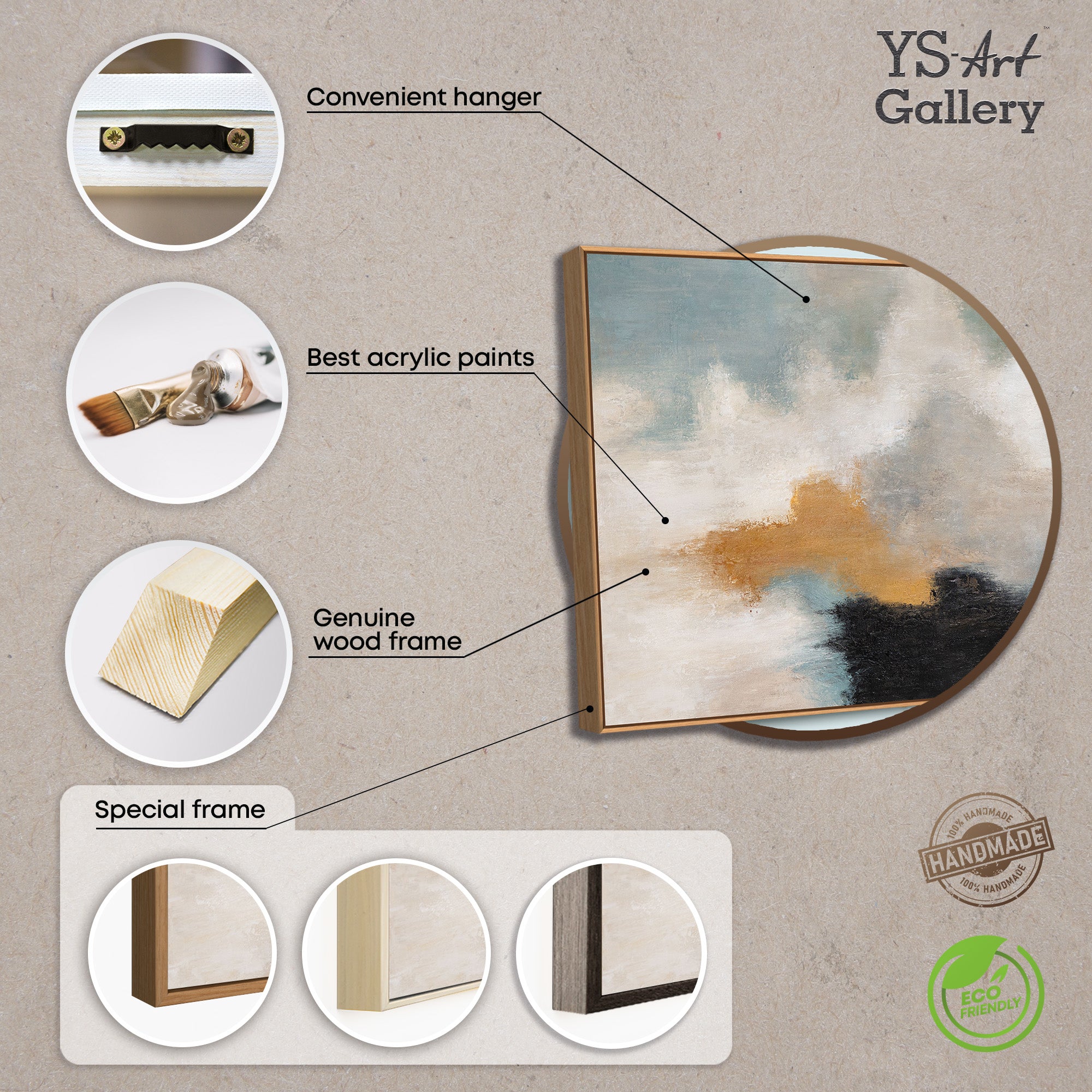 - Hand-painted: Yes, each acrylic painting is unique