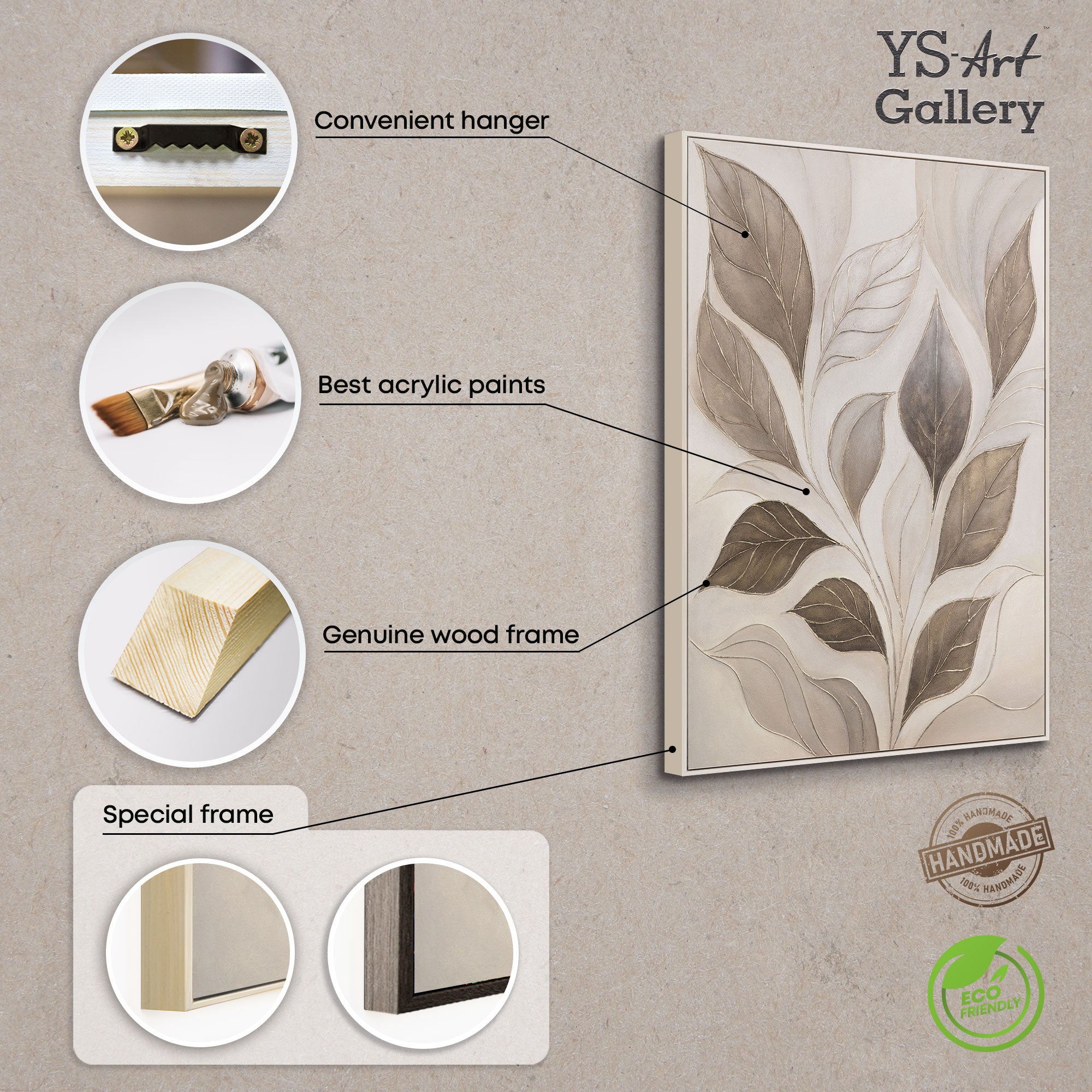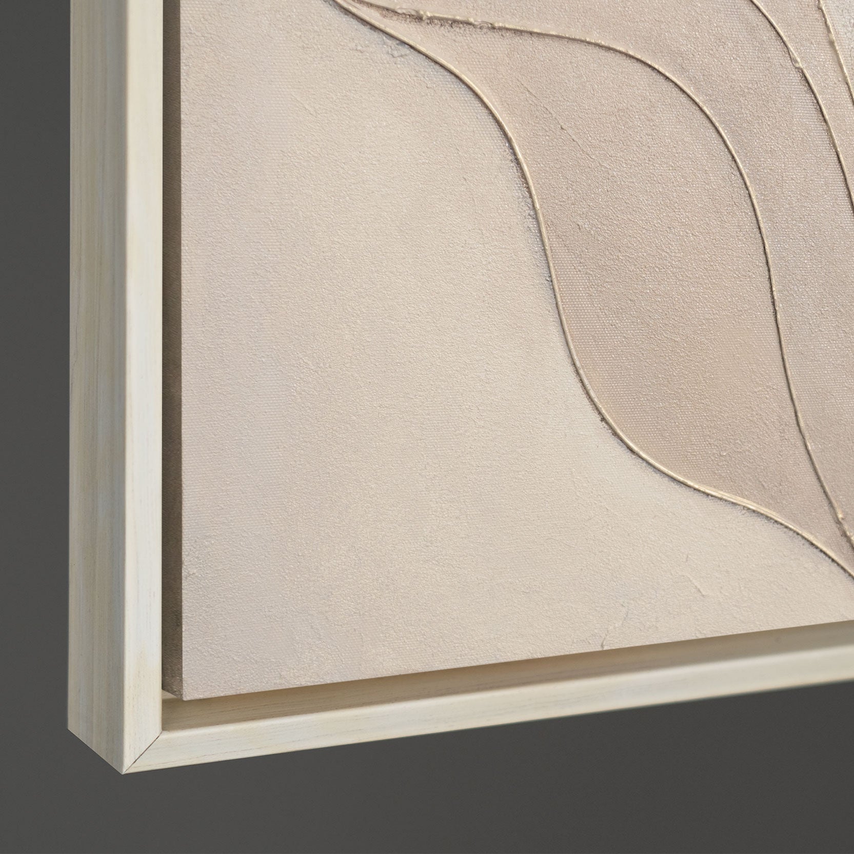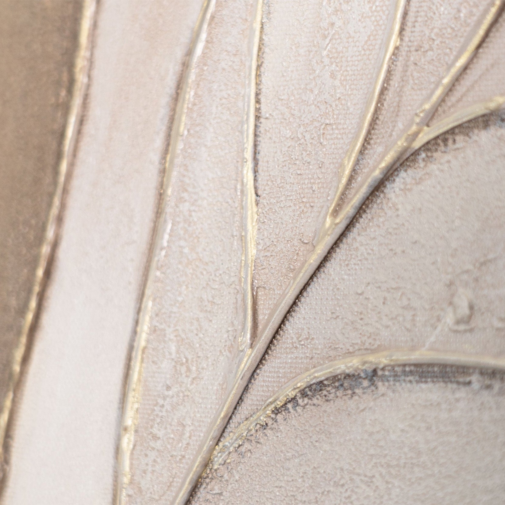„Wind in den Blättern“ fängt die Bewegung der Natur in zarter Struktur ein. Sanft geschwungene Blattformen in harmonischen Beigetönen fließen ineinander und erzeugen ein ruhiges, elegantes Gesamtbild. Gold-braune Akzente verleihen dem Motiv Tiefe und Leichtigkeit zugleich – wie ein Windhauch auf der Leinwand.