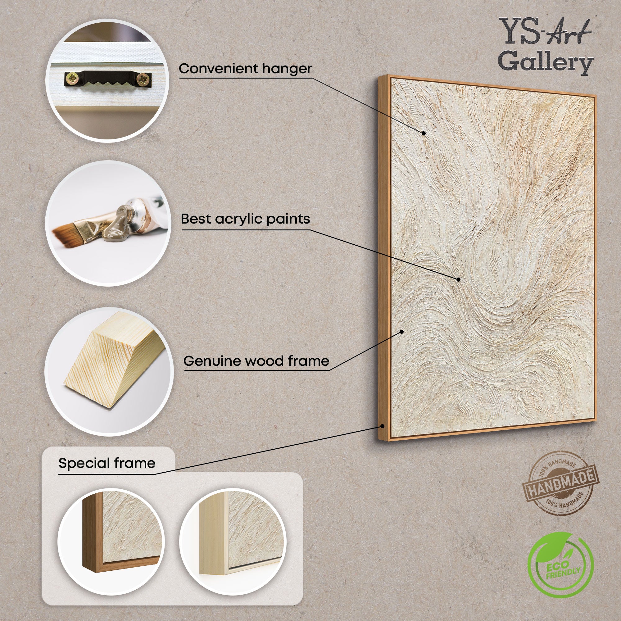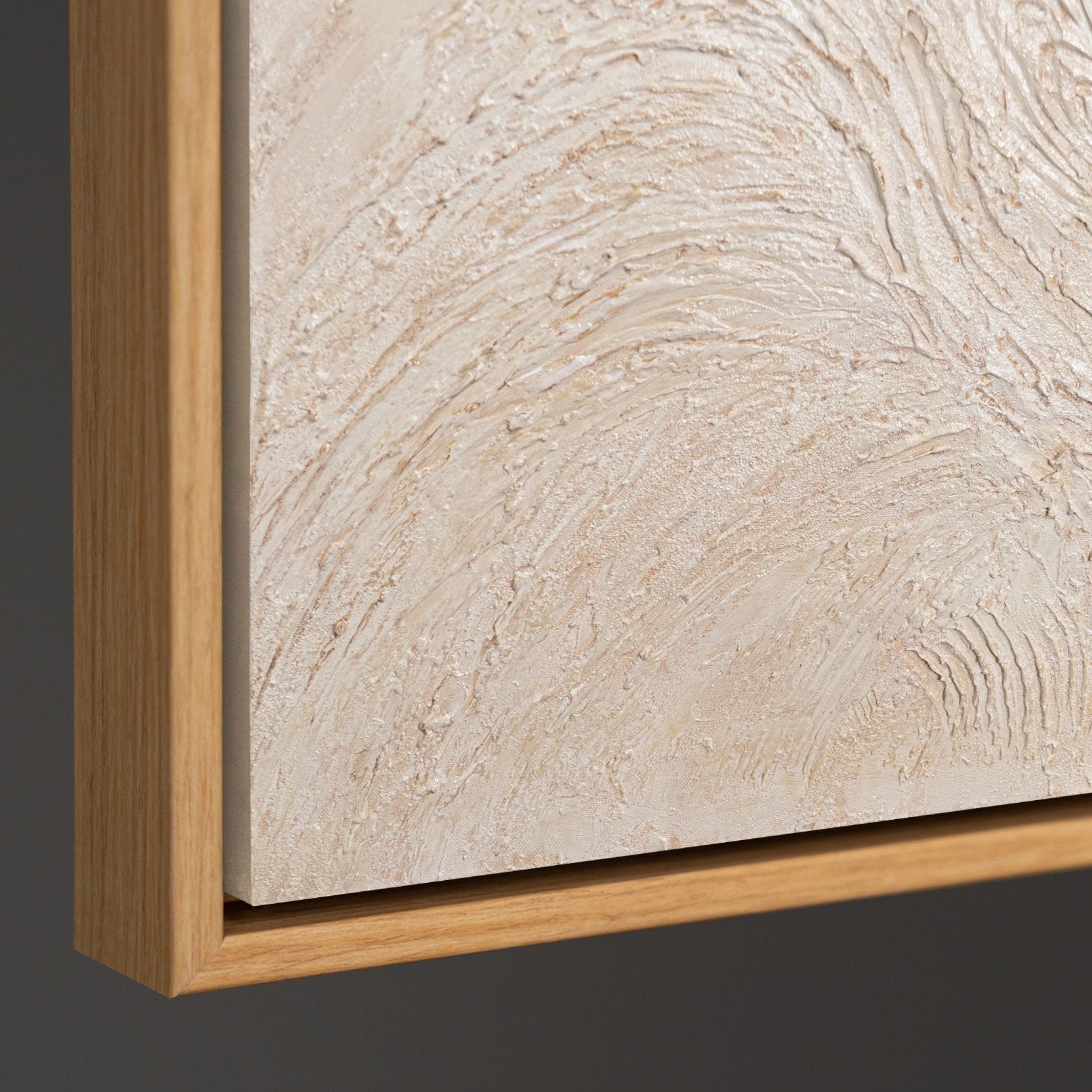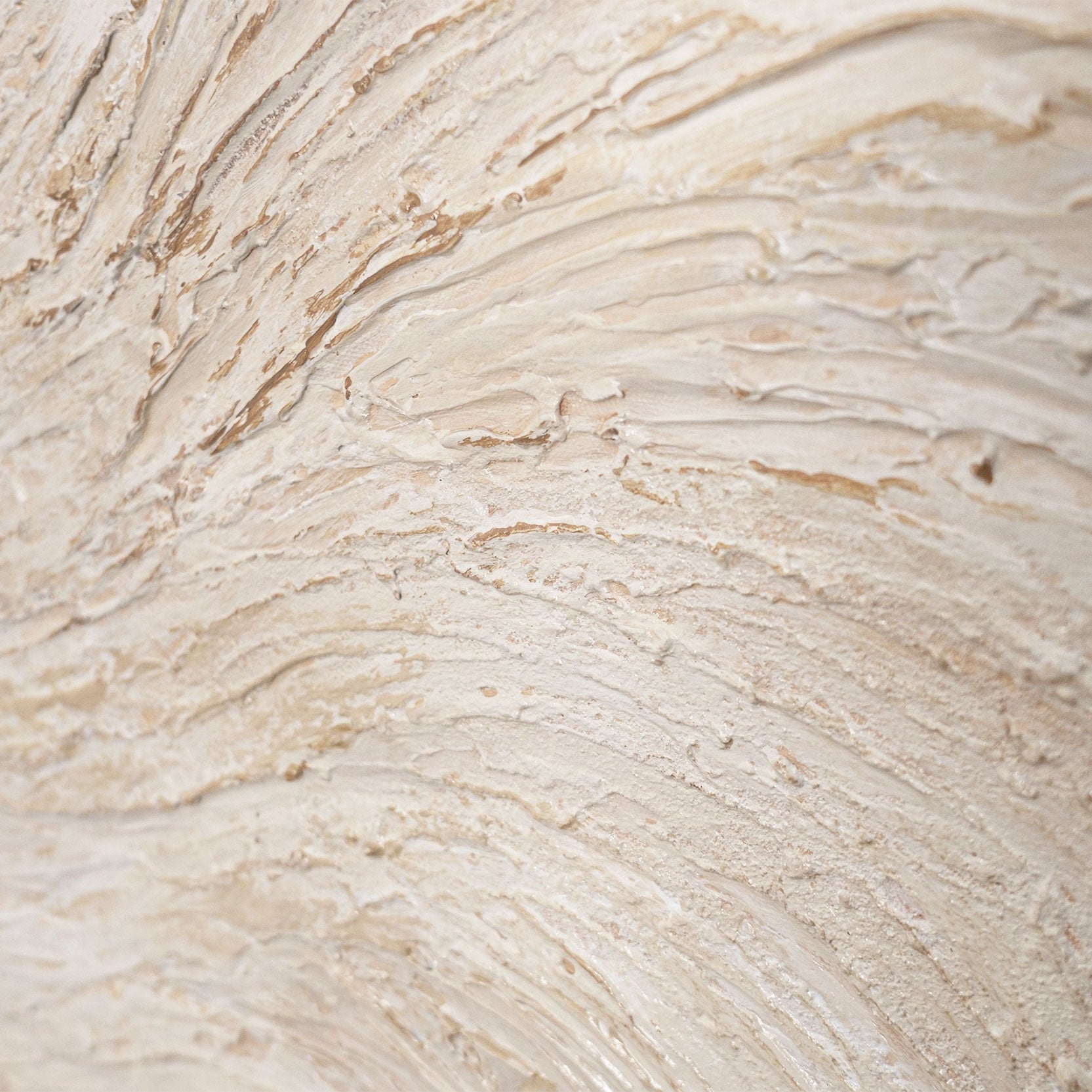 „Baumstrom“ ist eine Hommage an die Energie der Natur – ein Wirbel aus Bewegung, Struktur und Licht. In sanften Creme- und Beigetönen entfalten sich organische Linien, die an Jahresringe, Holzfasern oder vom Wind geformte Wellen erinnern. Jede Pinselspur folgt einem natürlichen Rhythmus, der Tiefe, Leben und Stille zugleich spürbar macht.