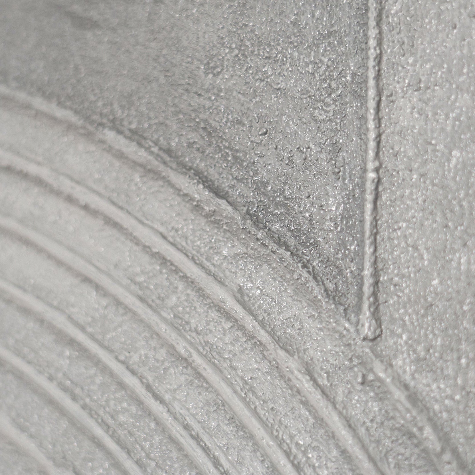 The abstract painting "Gray Chord" unfolds its effect through serene geometric forms, concentric circles, and a finely textured surface. Various shades of gray blend into a harmonious composition that exudes depth and balance without visually dominating. The relief-like acrylic painting creates a captivating interplay of light, shadow, and materiality.