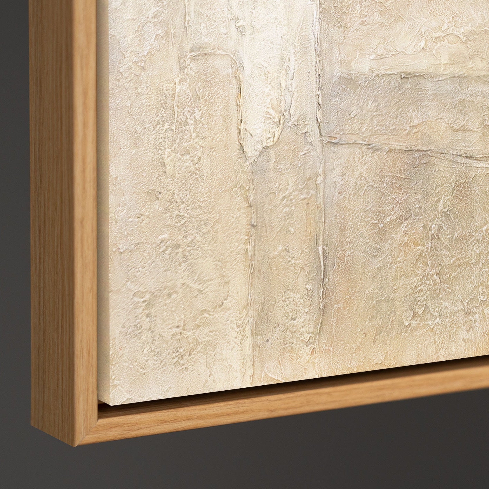 "Verticals of Time" is a serene, structured abstract painting that creates a clear, balanced composition through horizontal and vertical layering. The gentle transitions between beige, gray, and warm natural tones are reminiscent of geological formations and lend the acrylic painting a quiet depth. The finely detailed surface underscores the hand-painted character of this work.