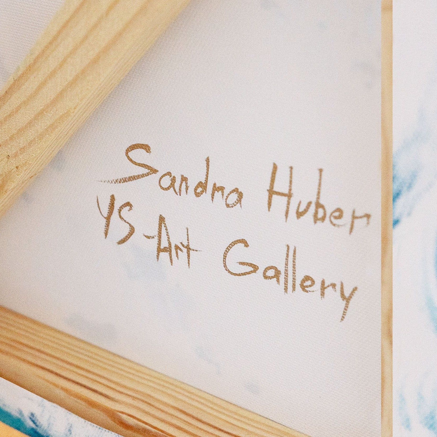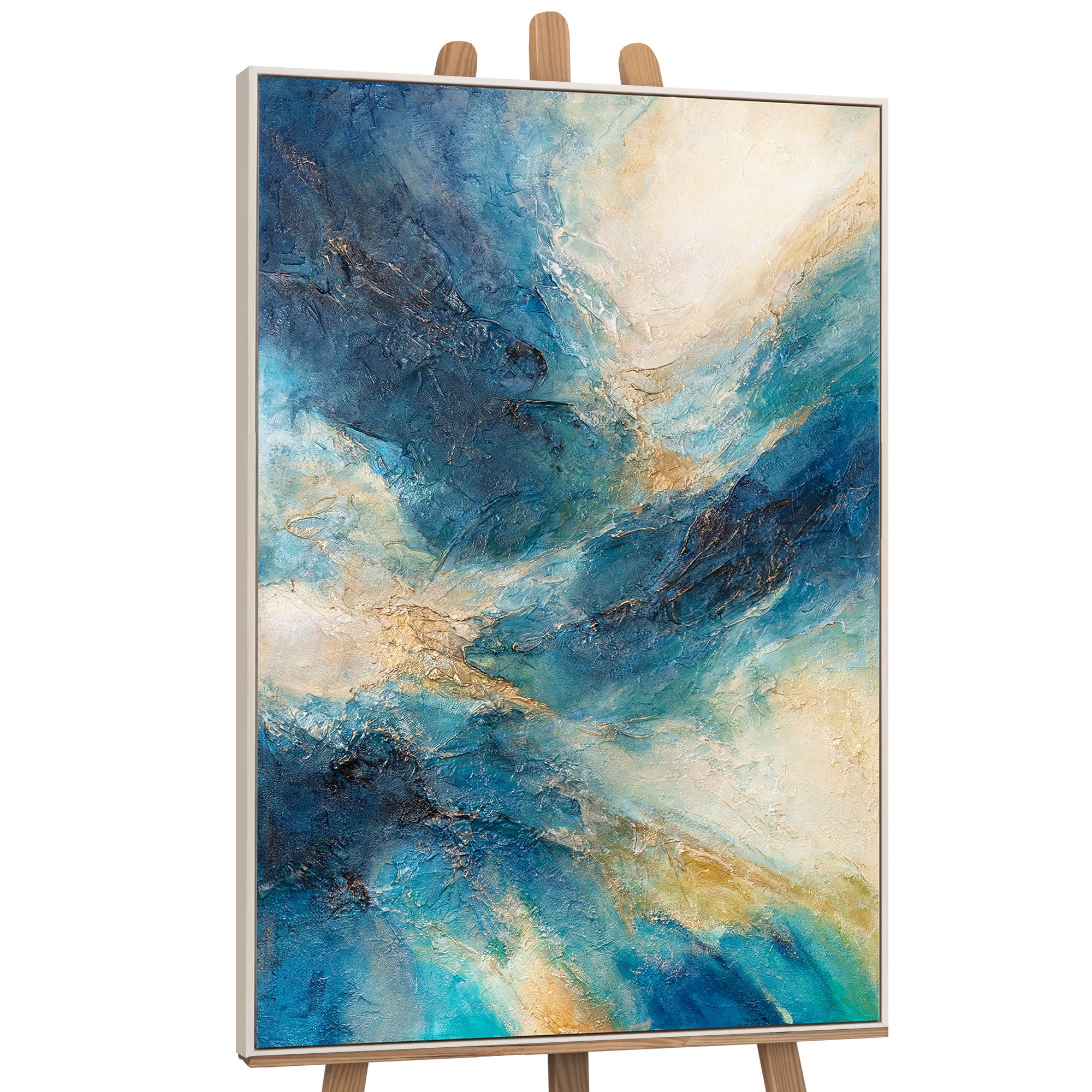 Dive into the depth of the ocean with the hand-painted canvas painting "Shine of the Waves." Powerful shades of Blue merge with soft White and golden accents, resembling light reflections on the water's surface. The textured surface adds depth and dynamism, making it a true focal point.