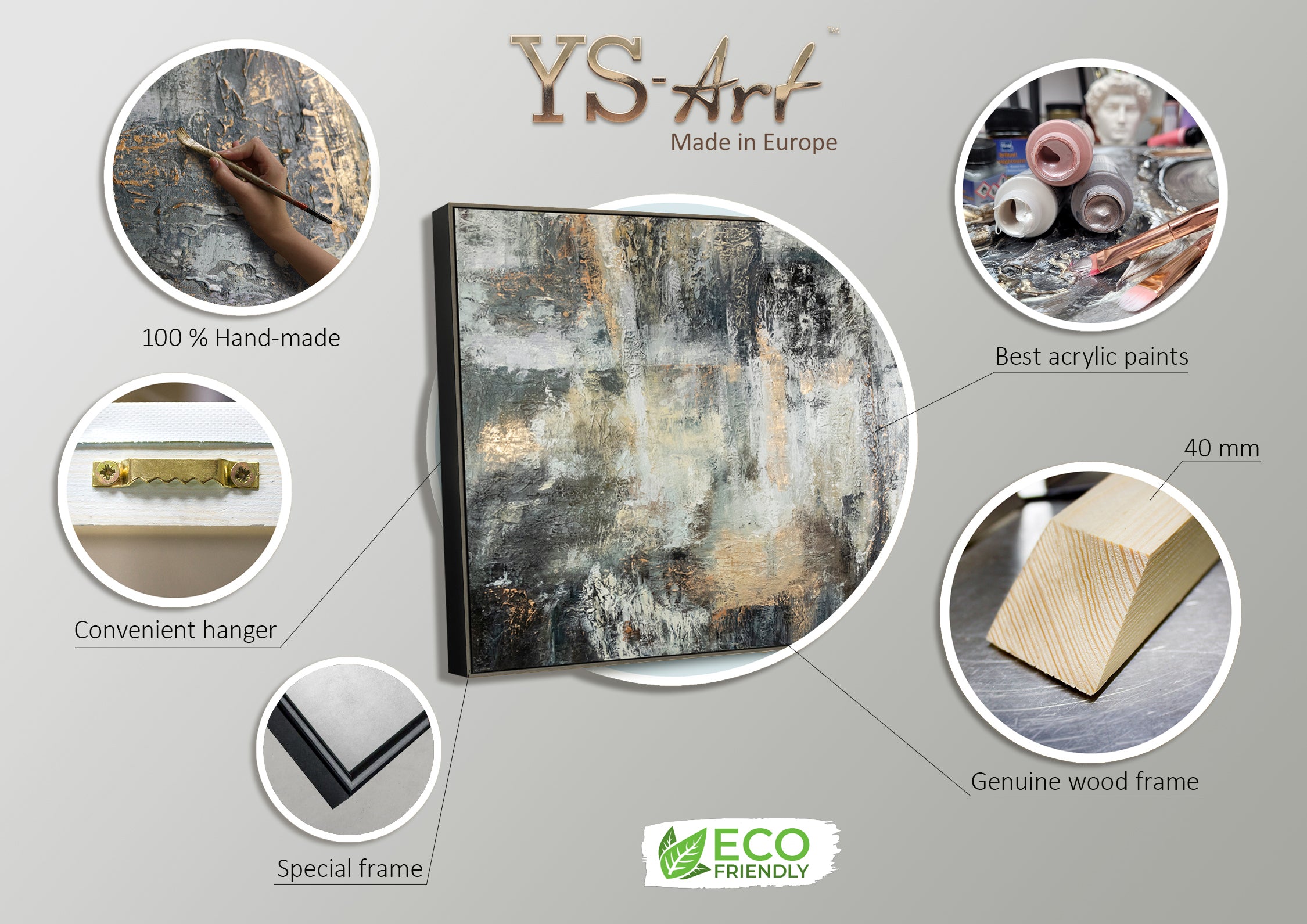 • Handgemalte Strukturkunst Grau Gold Acrylbild auf Leinwand