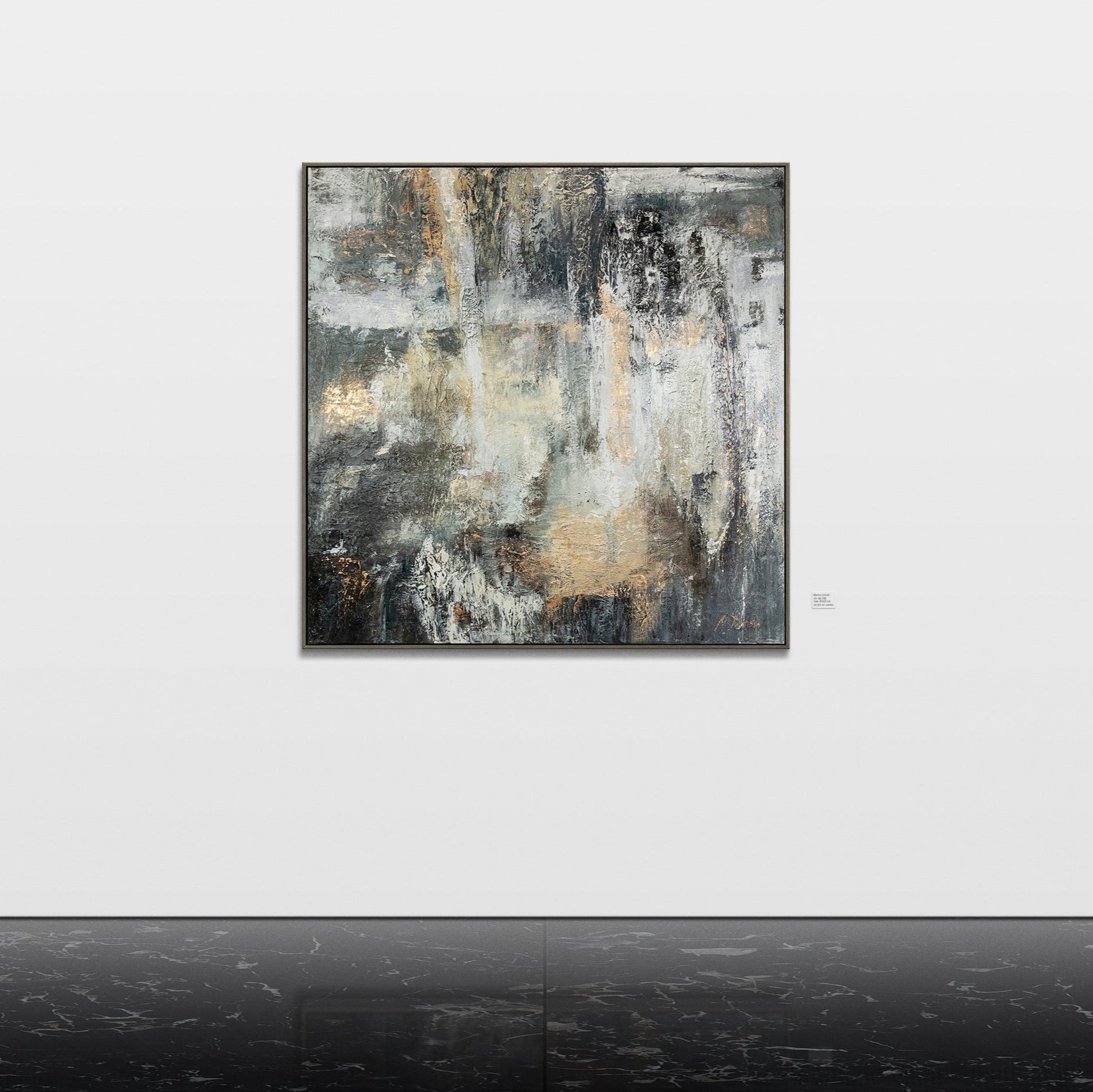 This unique abstract canvas painting embodies modern art at its most fascinating. The harmonious blend of cool gray and blue tones, adorned with golden accents, gives the artwork special depth and a calming aura. Each brushstroke tells its own story, while the intricate texture and soft color gradients make the piece come alive.