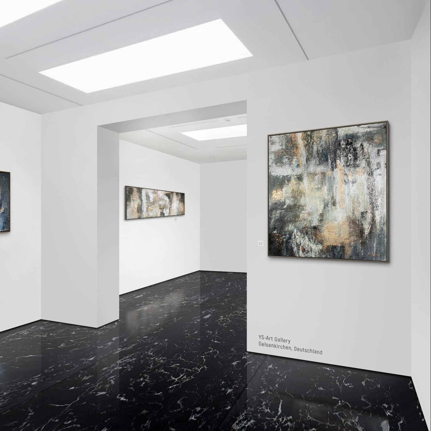 • Abstrakte Acrylkunst Grau Gold Strukturmalerei Handarbeit