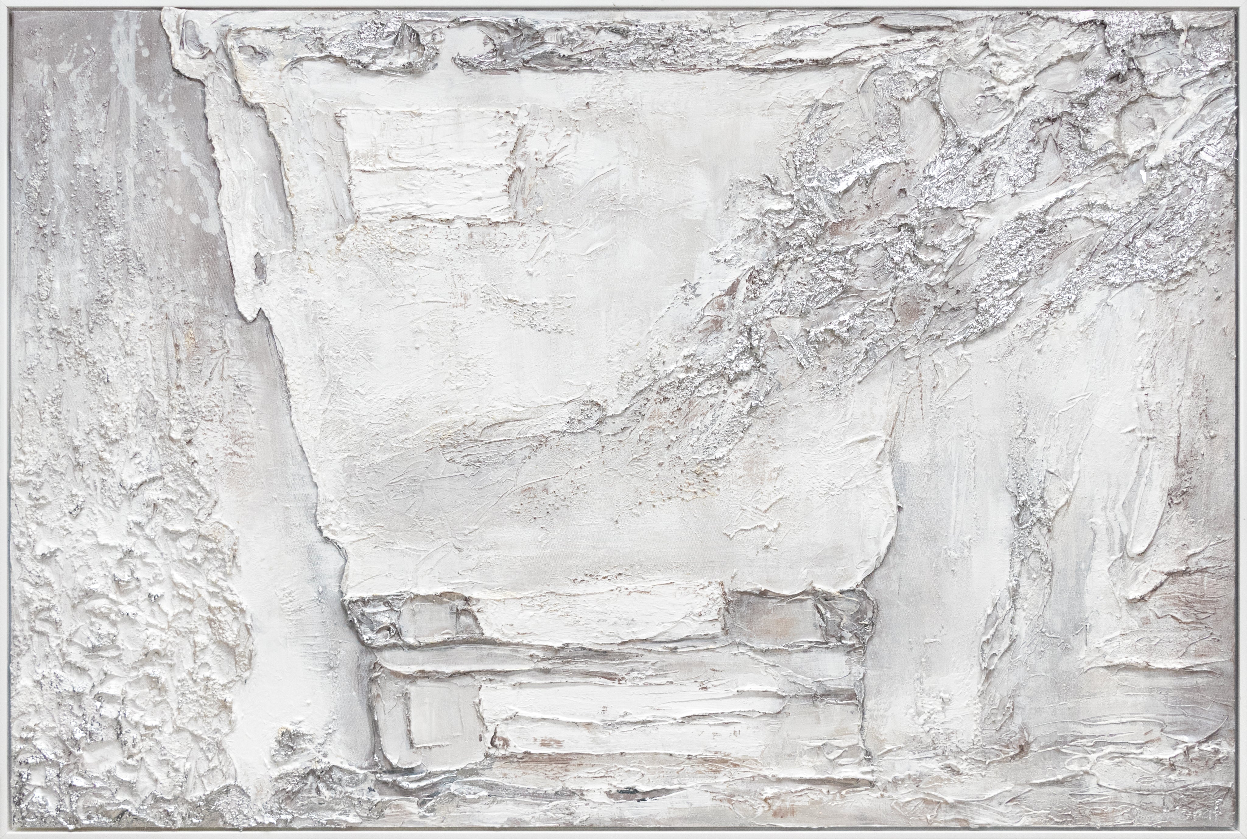 • Textured Acrylic Painting – White Abstract Wall Art with Silver Accents