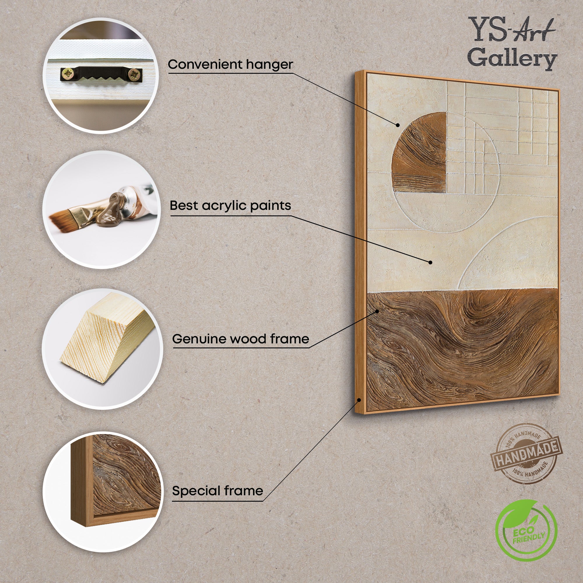 The work has a balanced, architectural feel and unfolds its effect as modern wall art in a variety of room concepts. Thanks to its neutral color palette, the painting can be combined in many ways while remaining timeless and present.
