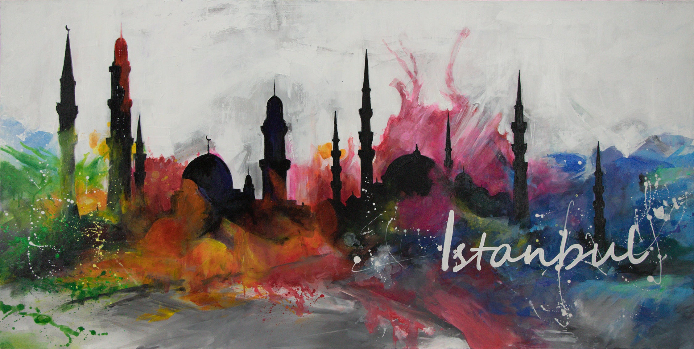 Immerse yourself in the world of vibrant and expressive art with this hand-painted painting of Istanbul. It depicts a dynamic silhouette of the city in bold colors that will transform any wall into a focal point. This work of art is completely hand-crafted and carefully presented in a matching frame that perfectly complements the overall look.