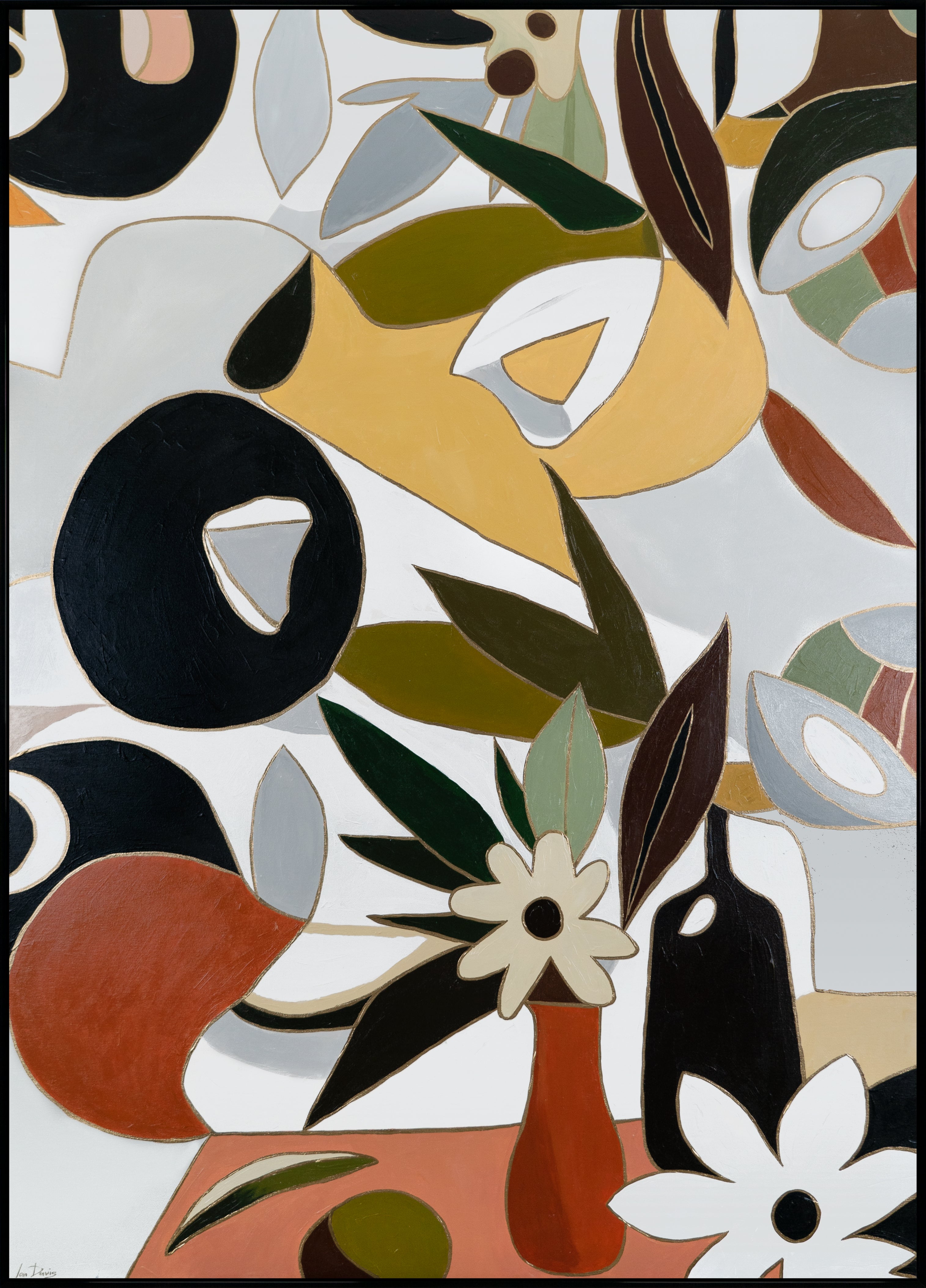 • Gesamtansicht des Leinwandbildes mit abstrakter Blumenkomposition