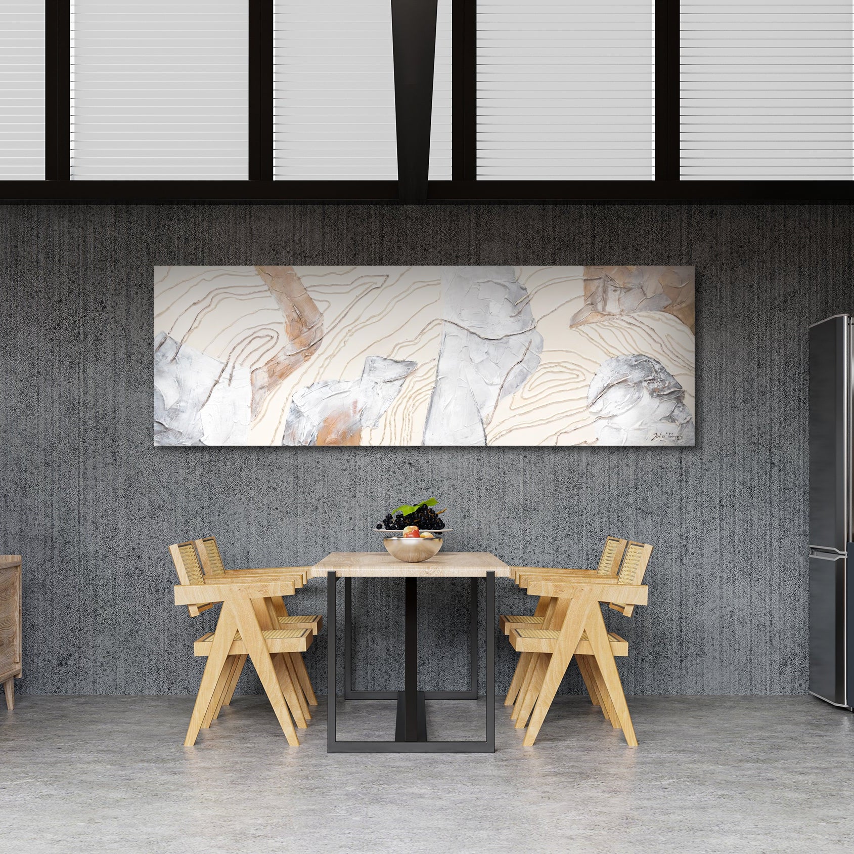Immerse yourself in the world of abstract art with this stunning hand-painted painting. The delicate lines and soft tones create an elegant and soothing atmosphere that will enhance any room. Every detail of this artwork is 100% handcrafted, making it a unique one-of-a-kind piece. Enjoy free delivery directly to your door.