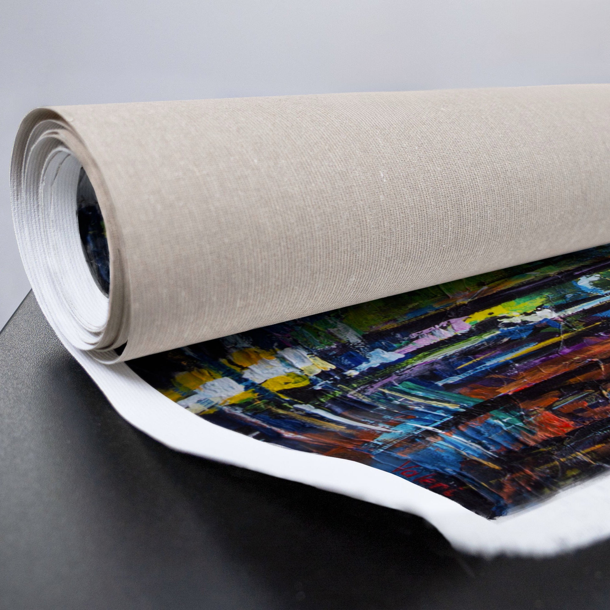 • gerollte Leinwand mit intensiver Farbgebung