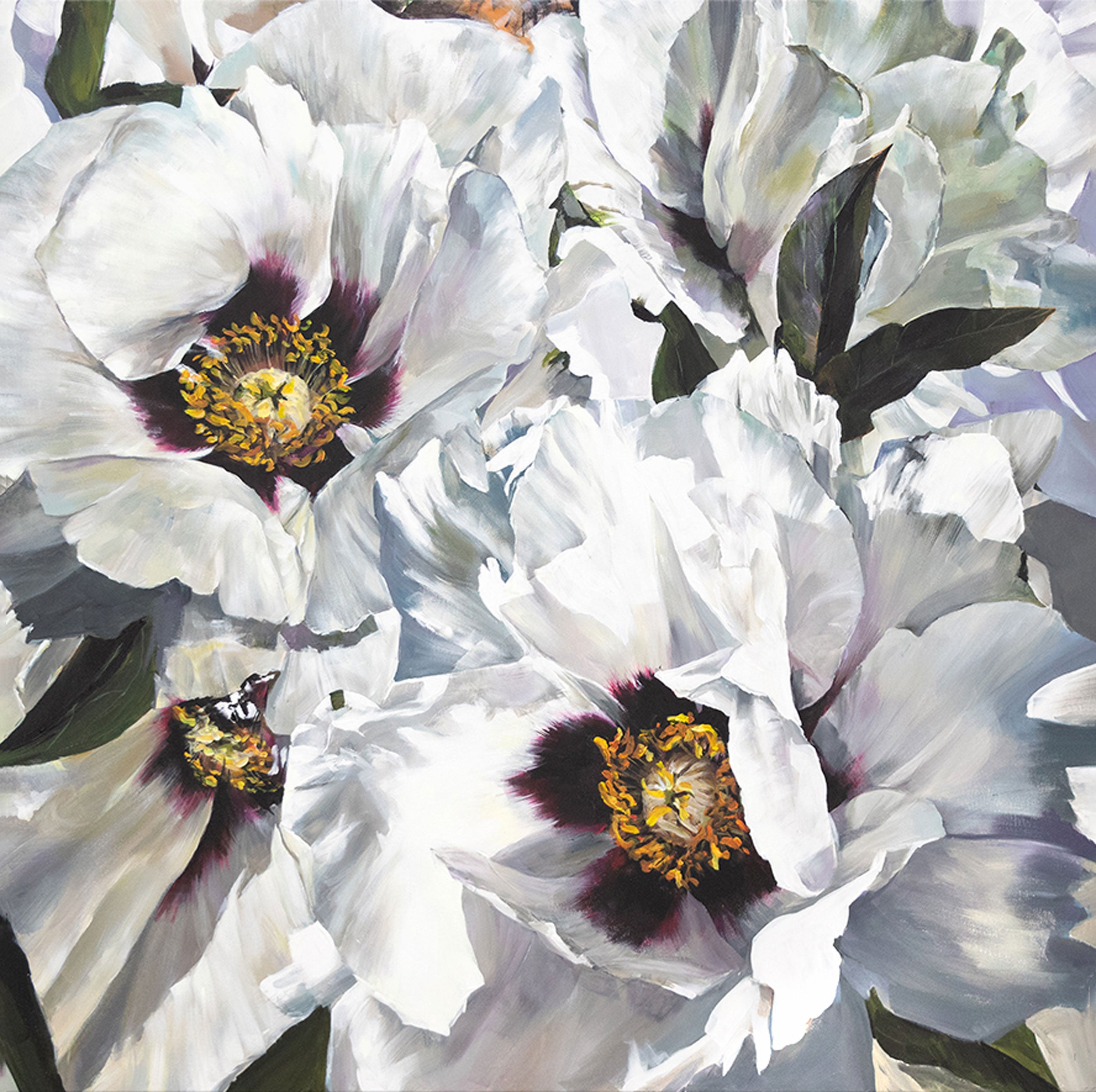 • Flowers acrylic painting on canvas "Snow lotus" 40x40 inch