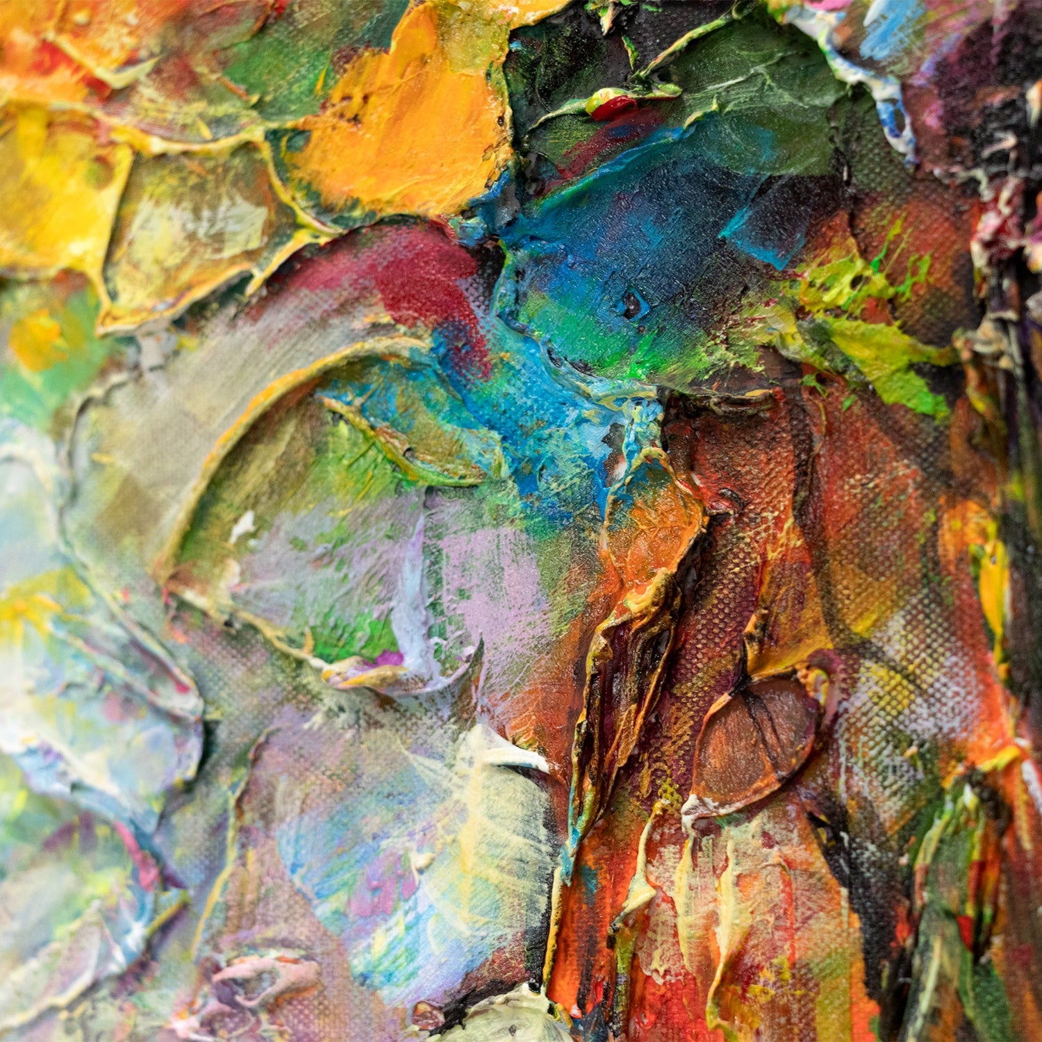 - Material: Acrylic on canvas with textured paste