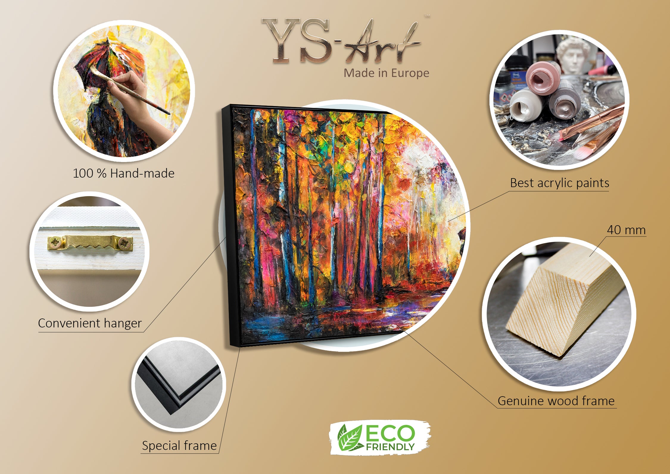 - Special features: Hand-painted, textured surface, framed