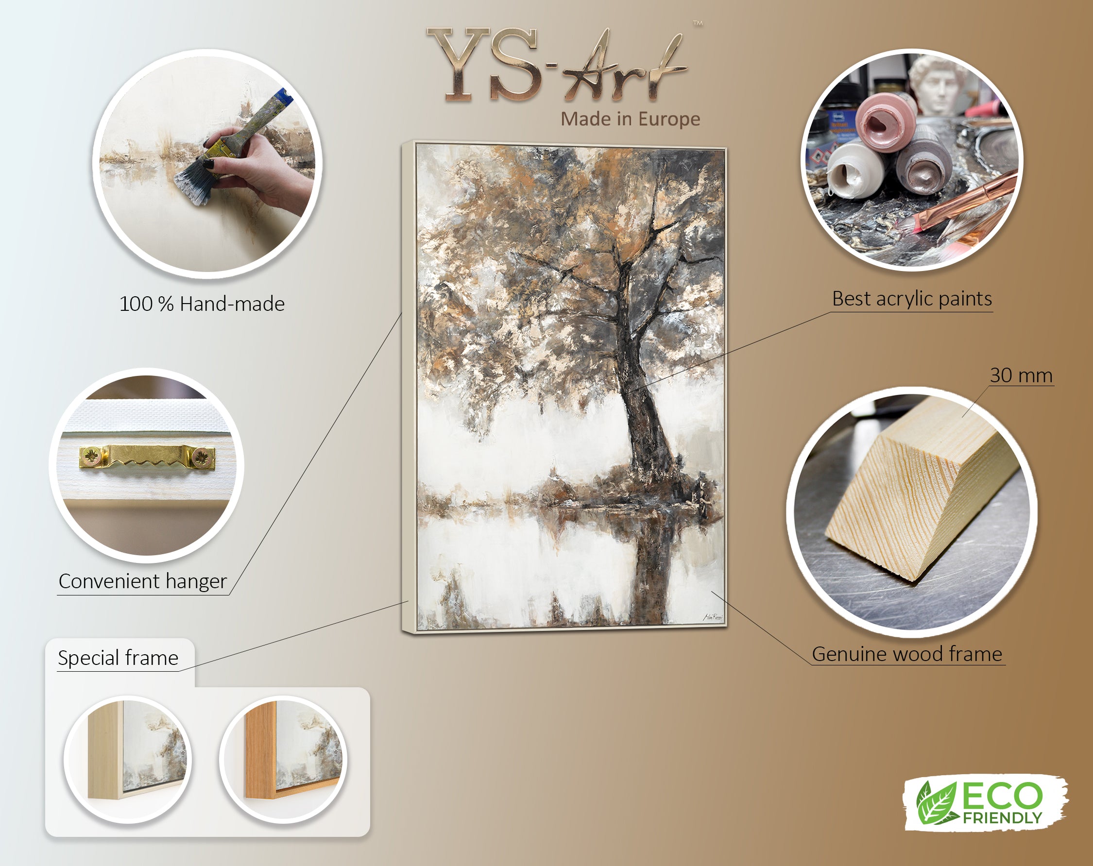 This hand-painted framed canvas painting has been painted with high-quality acrylic paints on robust canvas to ensure durability and color brilliance. The use of a special sealant protects the artwork from dust, UV rays, and everyday environmental influences, so you can enjoy it for a long time. To preserve the beauty of your acrylic painting, we recommend hanging it in a dry place and avoiding direct sunlight.