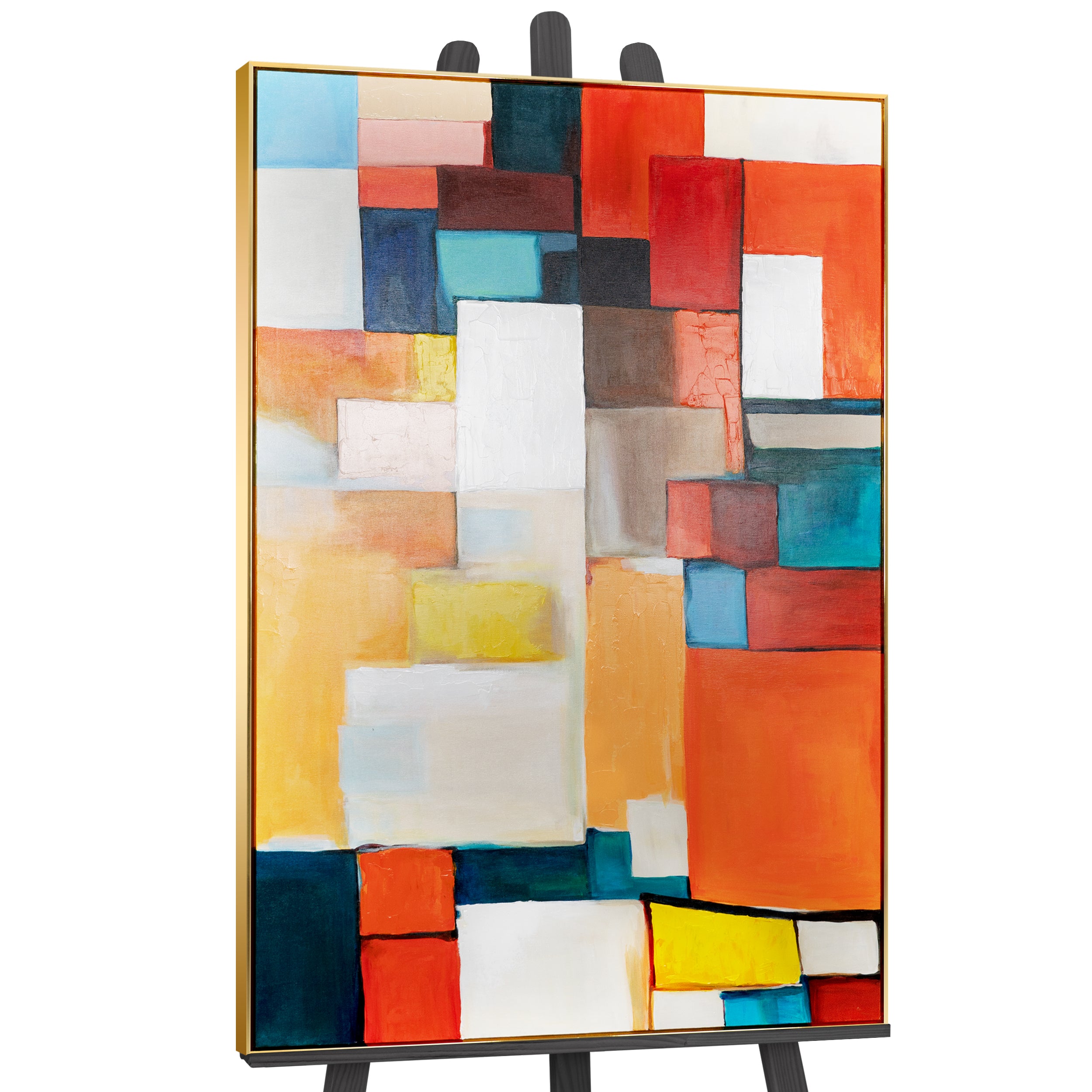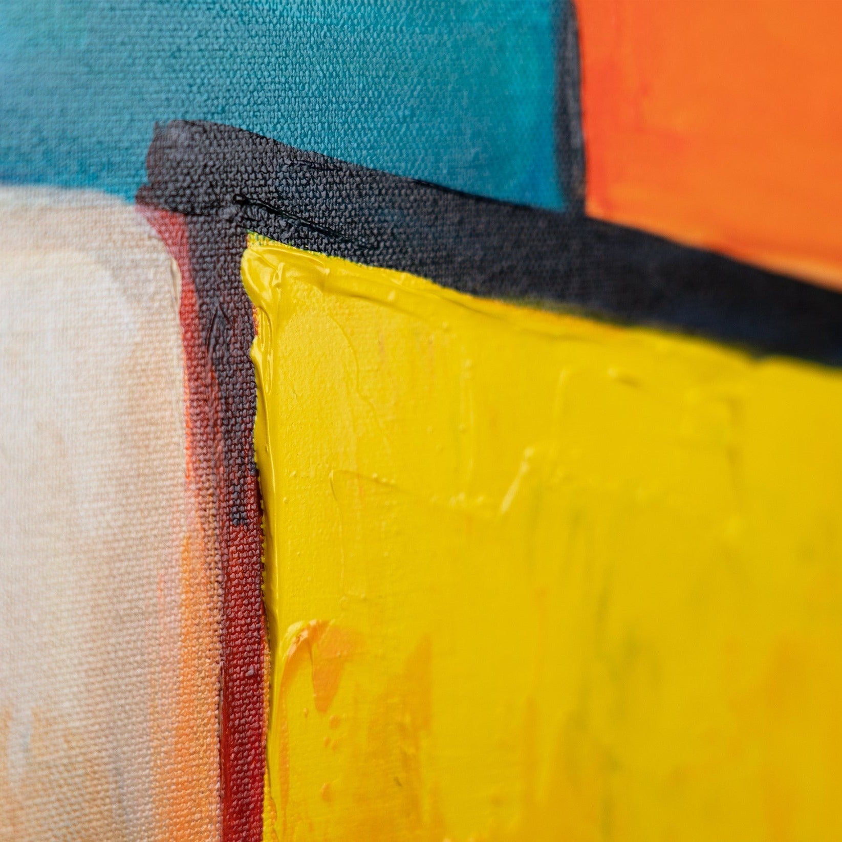 Discover the perfect abstract canvas painting for your home with this exclusive, hand-painted acrylic painting. Each piece is unique, created with passion and precision on high-quality canvas. The abstract, colorful squares come together to form a stunning, modern pattern, making this painting a real eye-catcher in any living room. With dimensions that fit perfectly above the sofa or as a central element of your wall design, this mural is an asset to any interior.