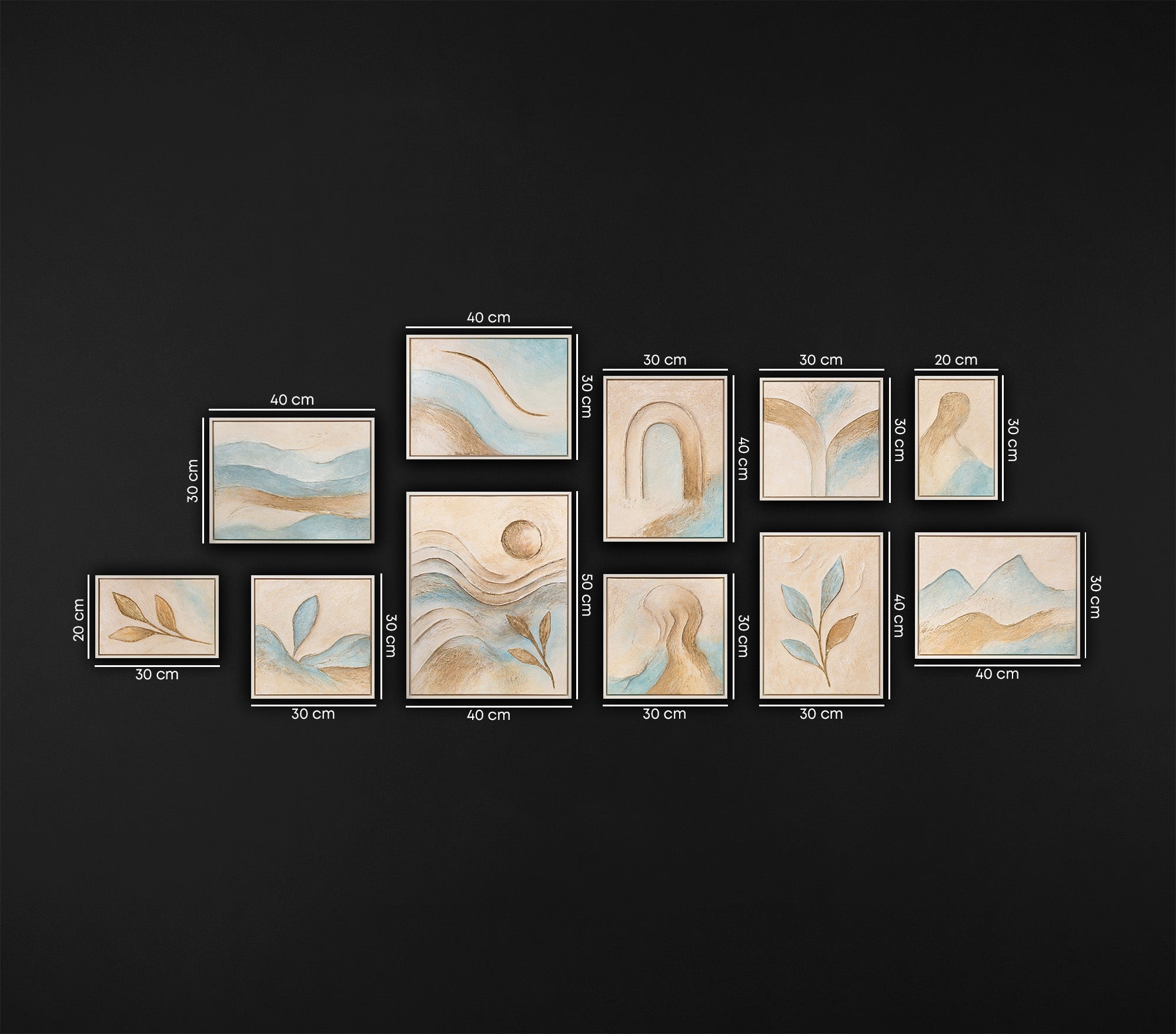 Flexibilität nach Maß: Egal ob als großflächige 11-teilige Wandgestaltung oder in kleineren Kombinationen wie einem 3er Bilder Set oder 4 teilige Bilder – dieses Bilderset Wohnzimmer lässt sich perfekt an Ihre individuellen Platzverhältnisse anpassen.