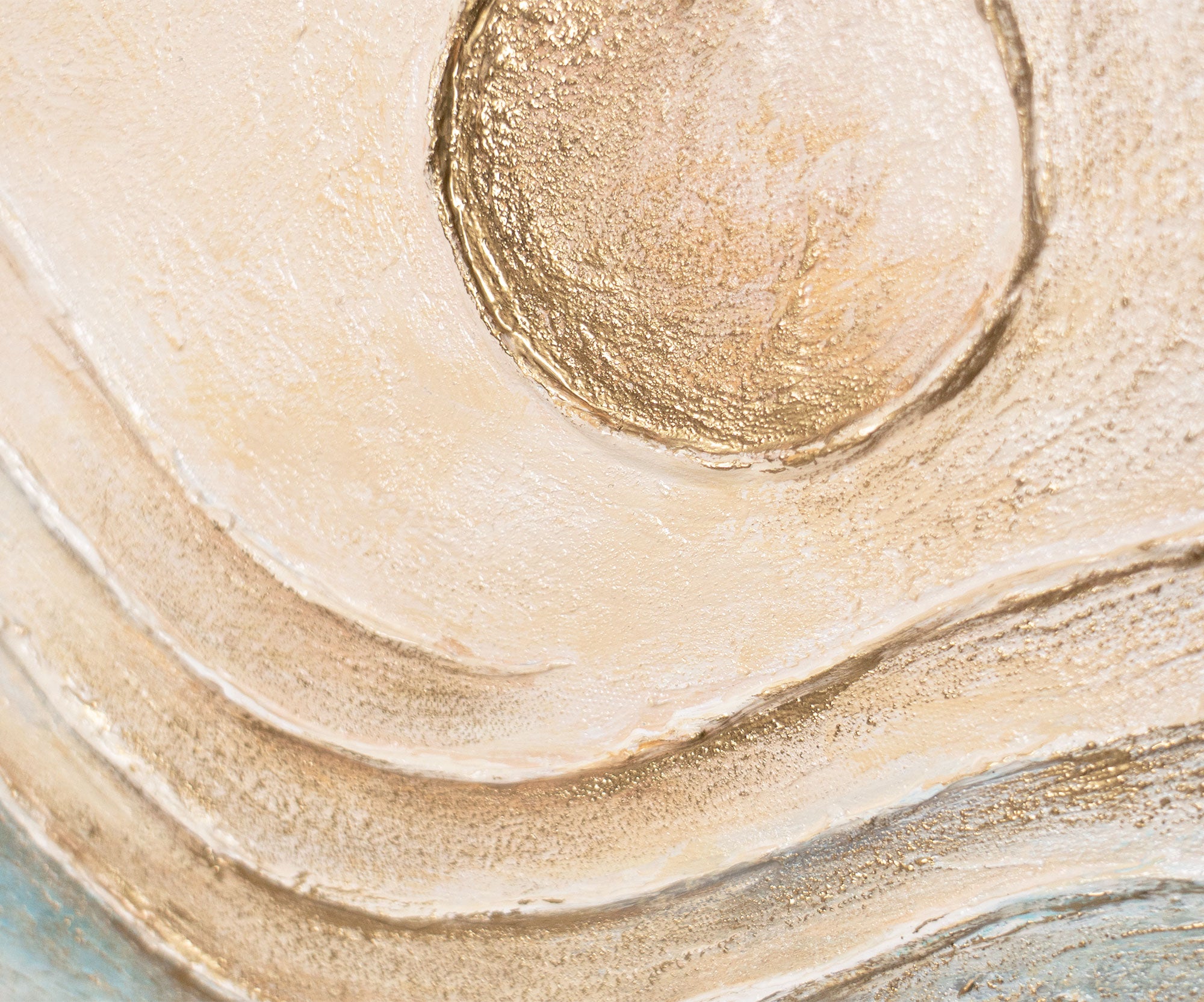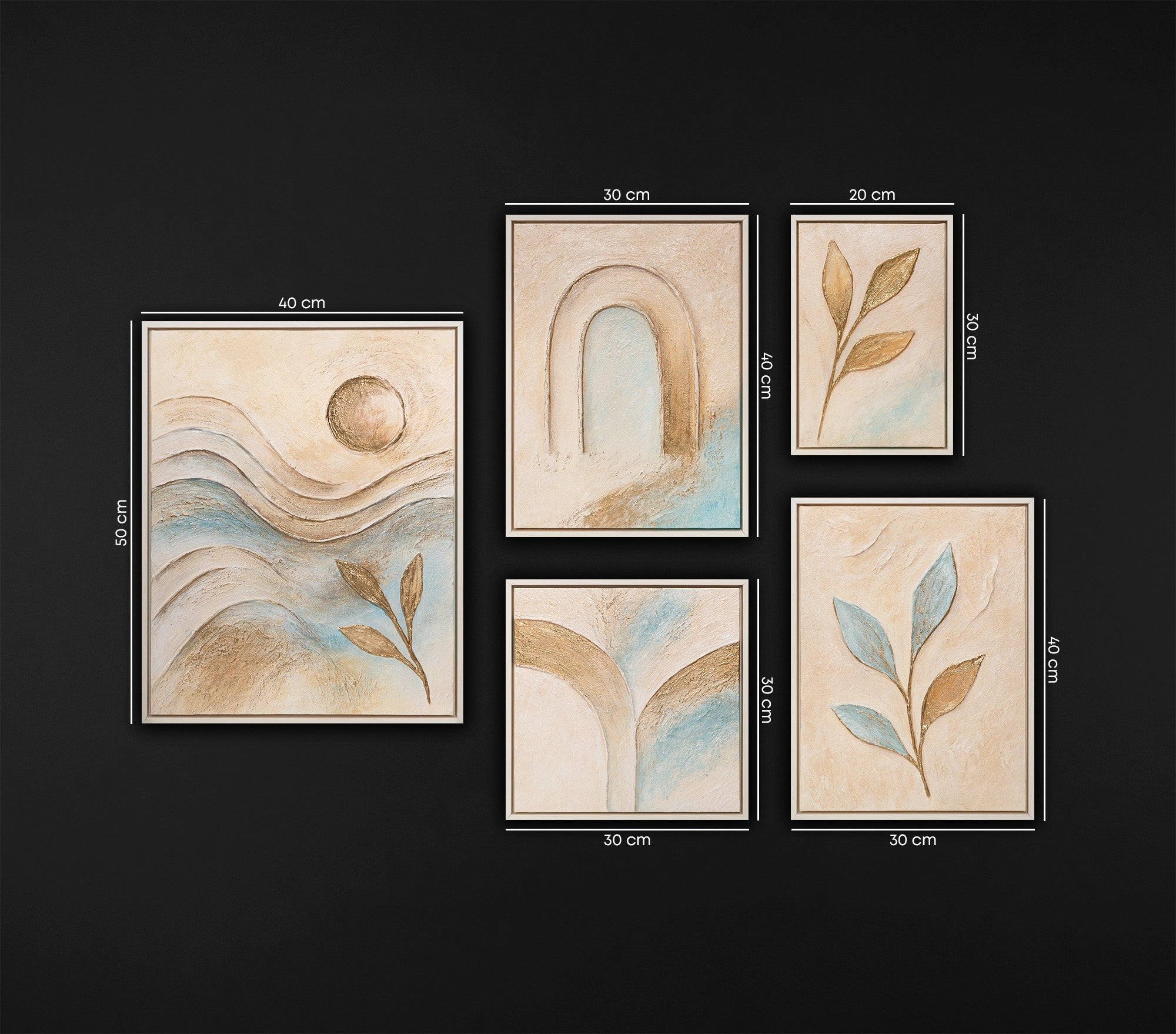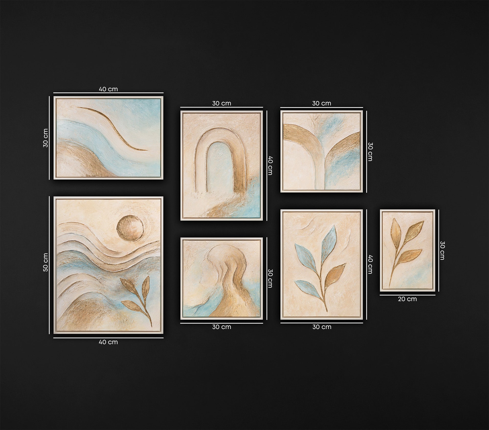 Zeitlose Eleganz und maritime Ruhe: Eine exklusive Galeriewand Verwandeln Sie Ihren Wohnraum in eine Oase der Entspannung. Das Set "Oceanic Serenity" ist ein beeindruckendes Wandbilder Set Wohnzimmer, das sanfte Wellenformen, abstrakte Bögen und organische Naturelemente in einer harmonischen Komposition vereint. Diese modernen Gemälde für das Wohnzimmer bestechen durch ihre edle Palette aus kühlem Blau, warmem Beige und schimmernden Goldakzenten.