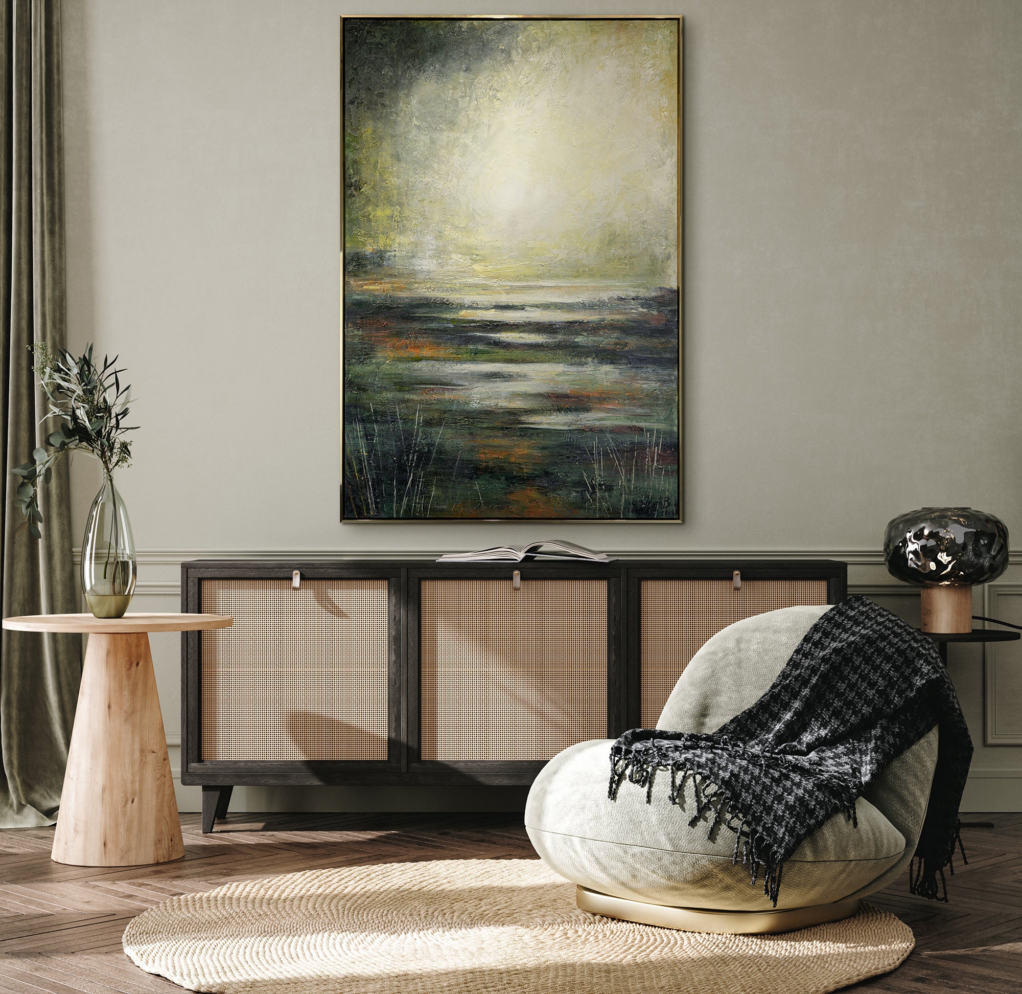 • Handgemalte Acrylkunst Abstrakt Goldene Reflexion