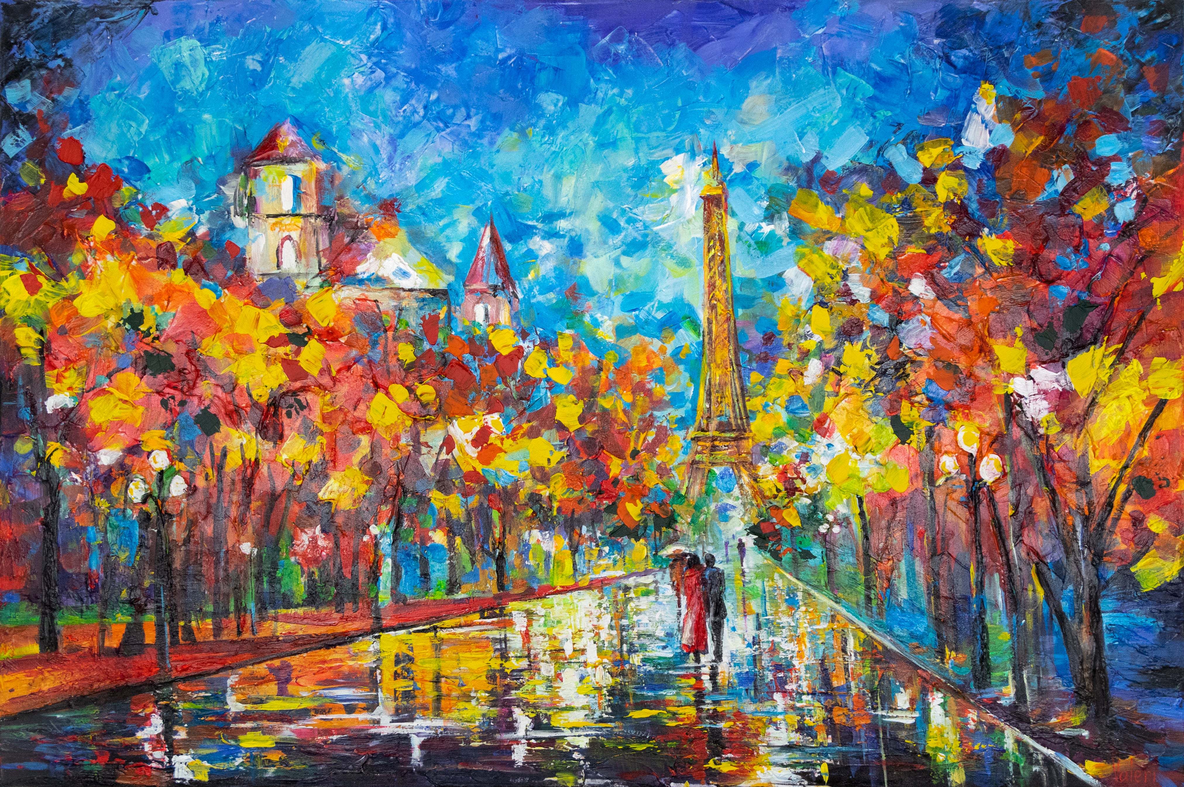 • Modern acrylic painting with frame "Evening in Paris"