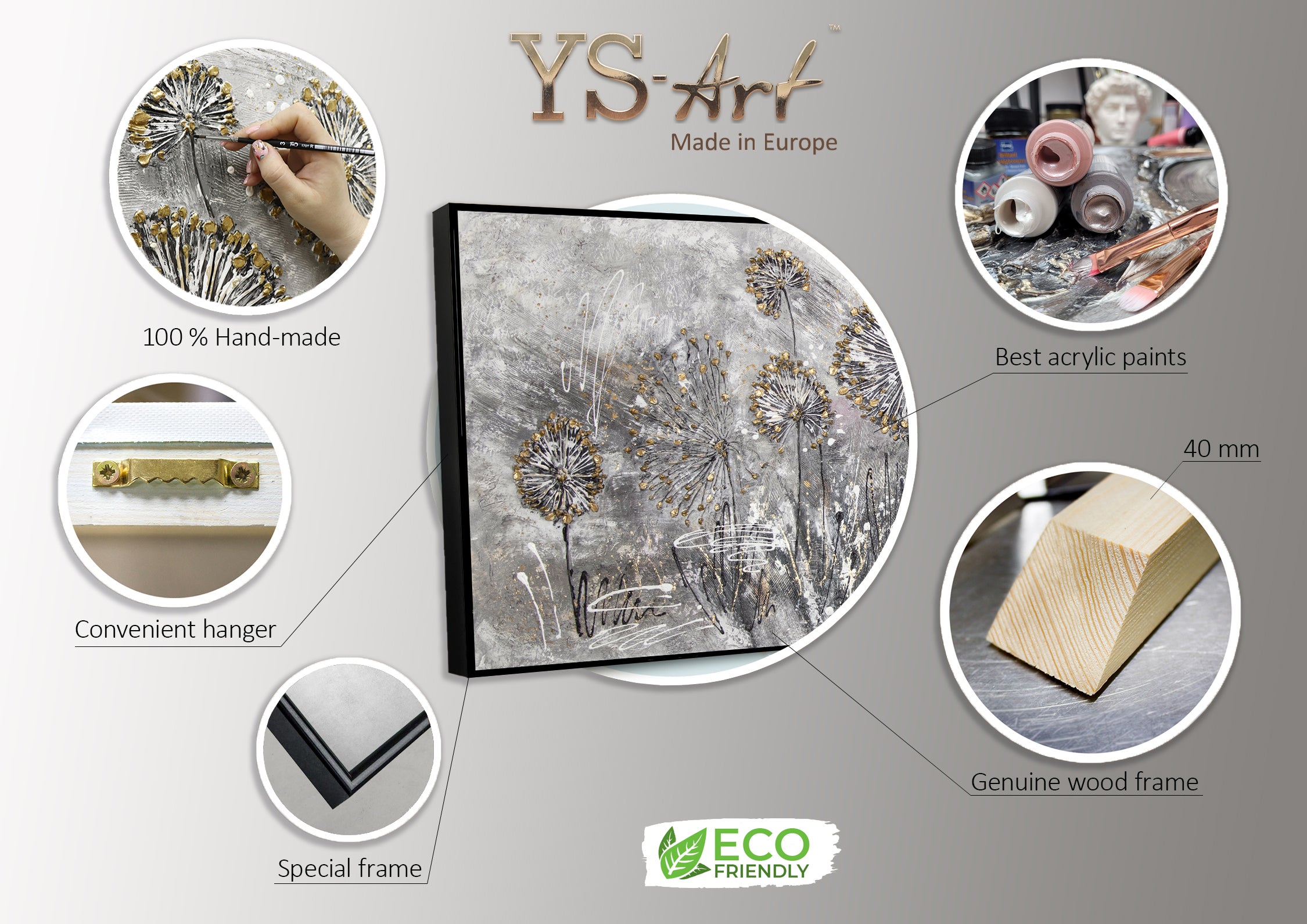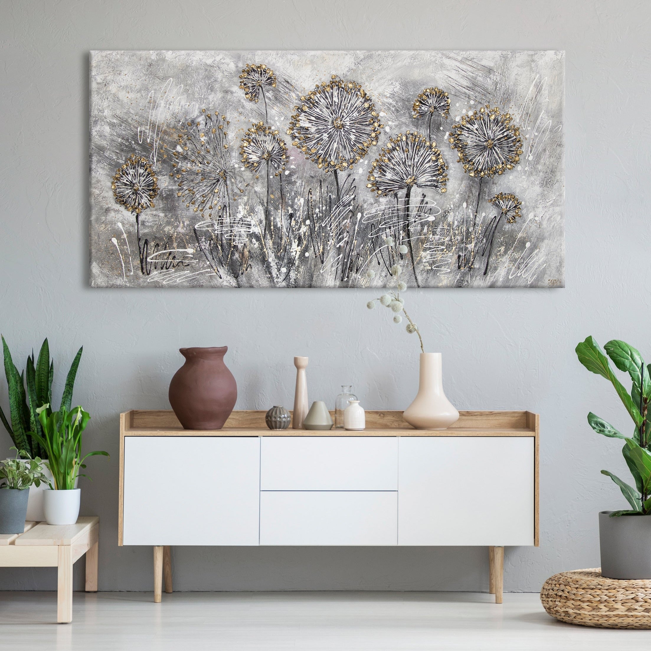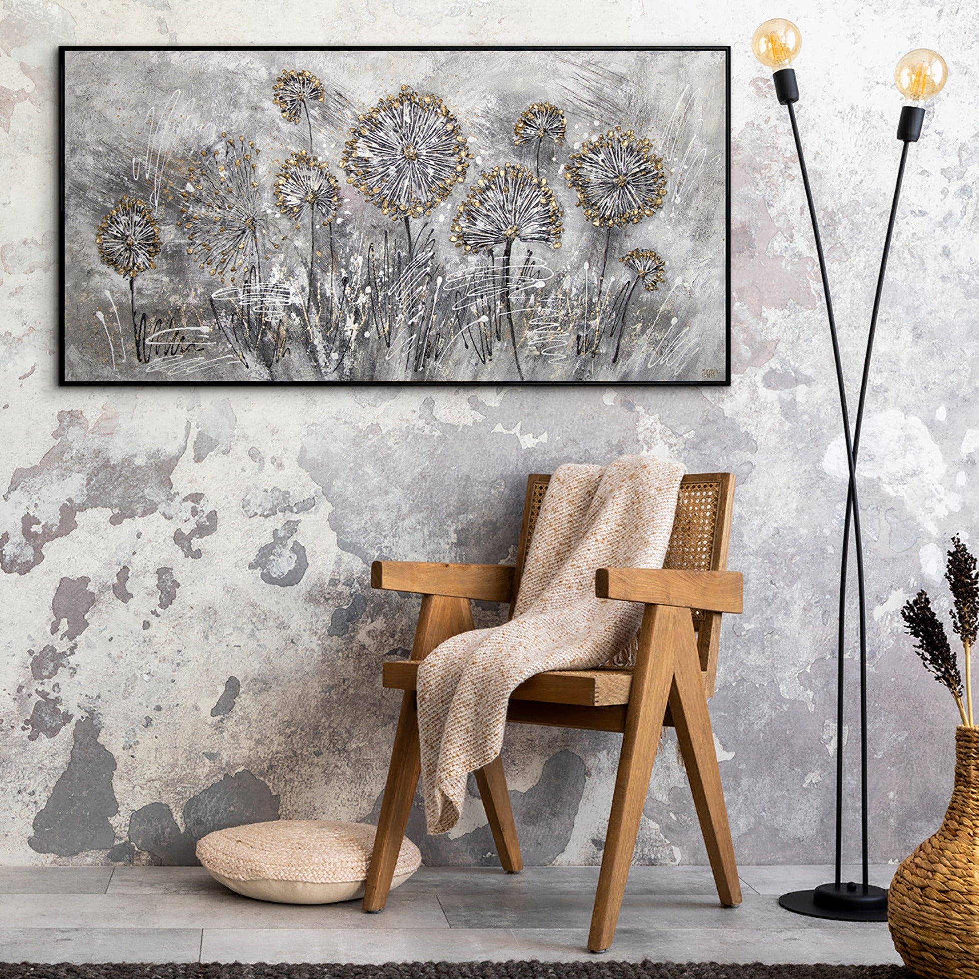 • Handgemaltes Wandbild Acryl Struktur Blumen Modern