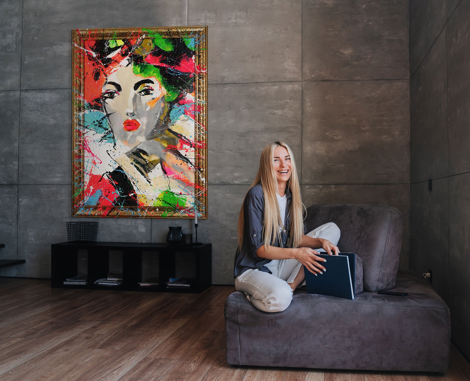 • Moderne Wandkunst Portrait Acrylbild Neonfarben Struktur